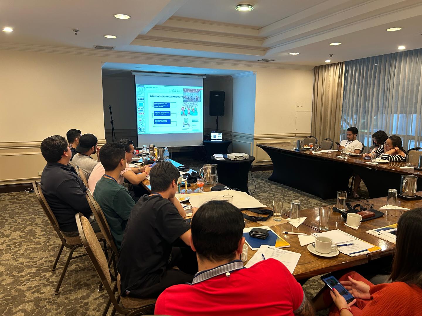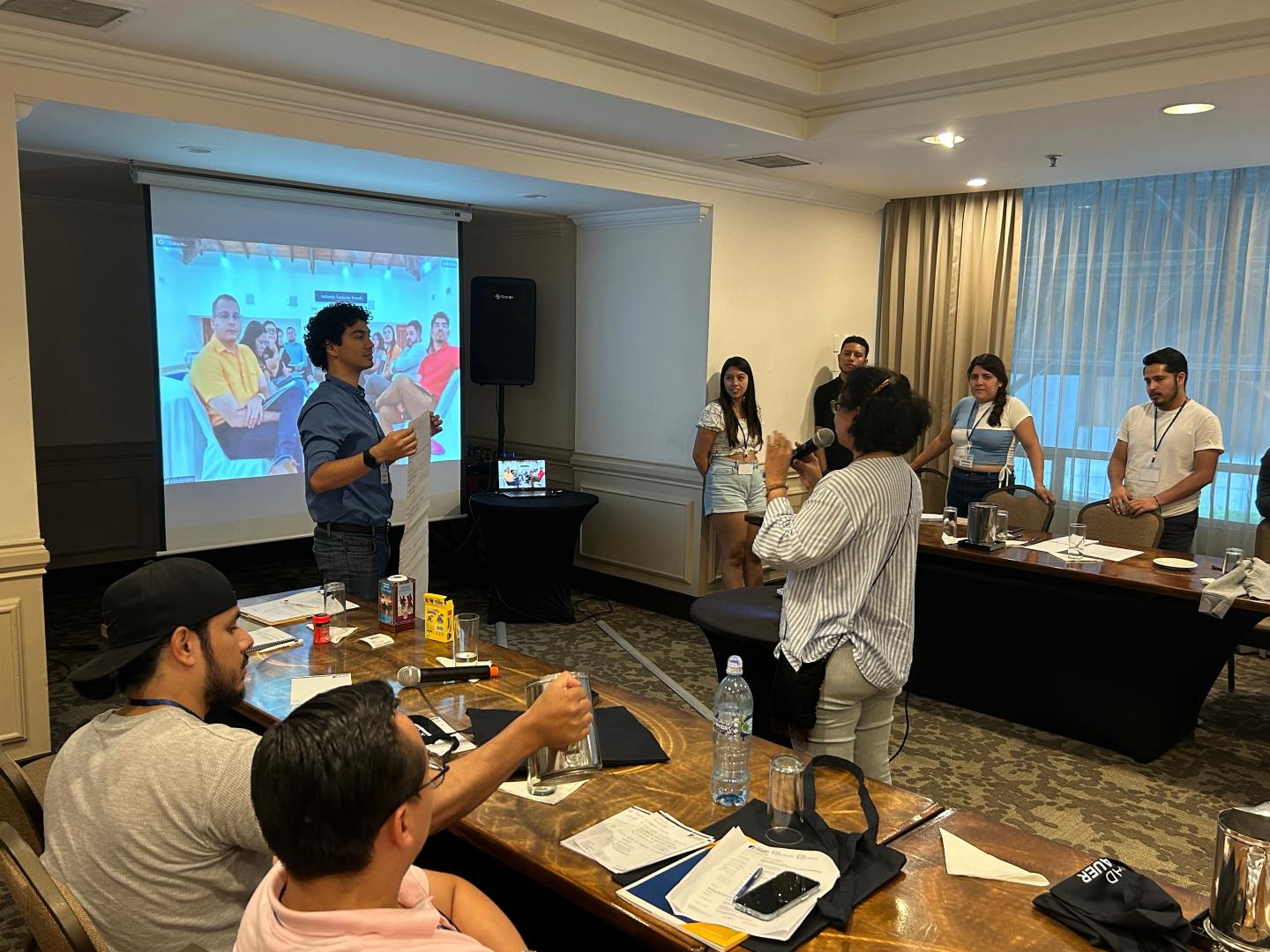 1. Teambildung, interaktiver Workshop Öffentliches Reden und Toolbox für junge Leute, gehalten von Ing. Daniel López (Guatemala).