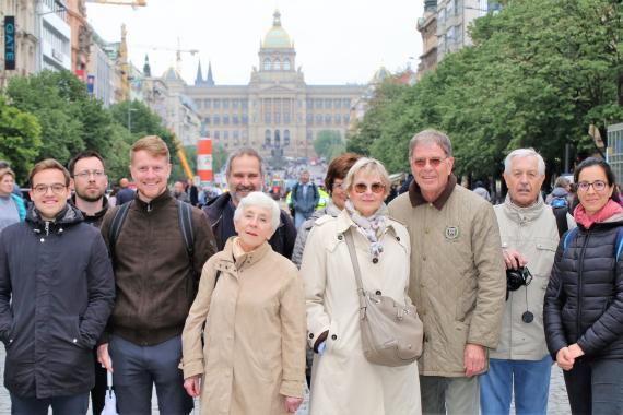 Bauten vom Mittelalter bis zur Moderne leuchten frisch gestrichen und unzerstört. Schicke Frauen und Männer kaufen ein. Schüler knipsen sich gegenseitig mit Plüschfiguren. Touristengruppen aus Asien, Europa und  Amerika drängen sich. Luxushotels, Straßenbahnen und das riesige Nationalmuseum bilden die Kulisse: Wo vor Jahrzehnten Bilder einer Selbstverbrennung, russischen Panzern und  prügelnden Polizisten zu sehen waren, herrscht heute das pralle Leben einer europäischen Hauptstadt: 2019 ist Prags Wenzelsplatz auch das Ziel einer Gruppe von Gästen der Konrad-Adenauer-Stiftung. Während Theologe Petr Krizek seine Erlebnisse aus den Wendezeiten erzählt, wird es still. Applaus brandet auf: „So lebendig geschildert“, hatten sie Geschichte und Politik nicht erwartet. Doch wie steht es um Demokratie, Meinungs- und Pressefreiheit heute? Und was haben 100 Jahre Bauhaus damit zu tun? Antworten erahlten sie auf der  Bildungsreise vom 16. bis 19. Mai: „Macht und Ohnmacht in totalitären Systemen – Zeithistorische Auslandstagung zur Villa Tugendhat in Brünn“.