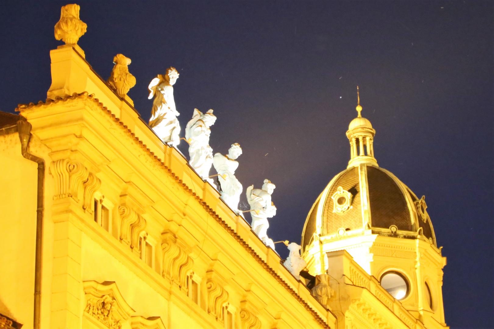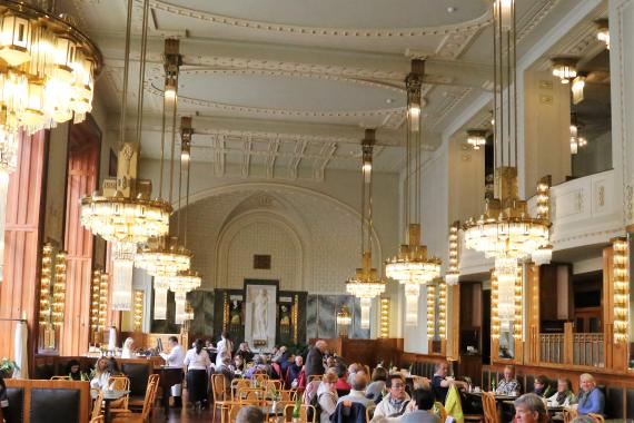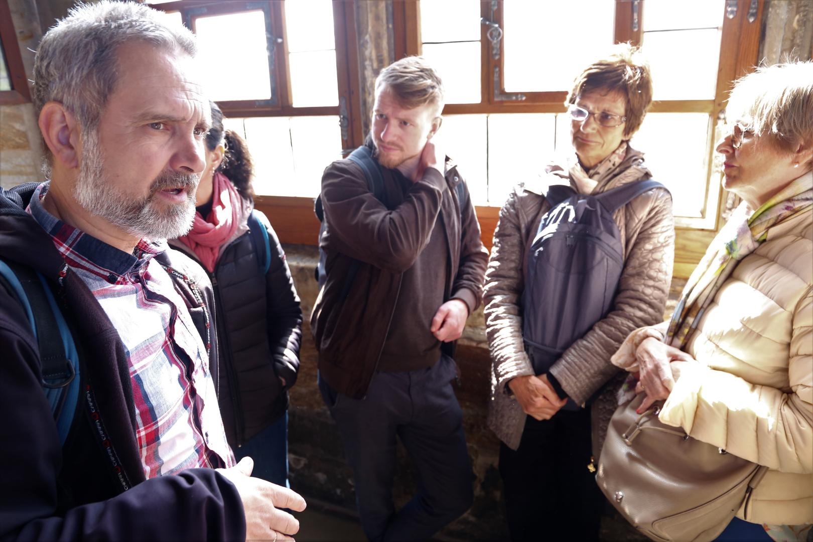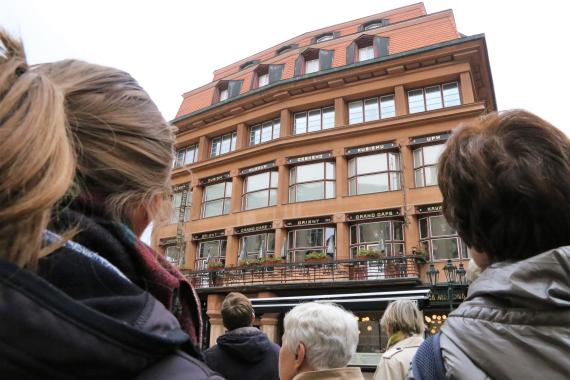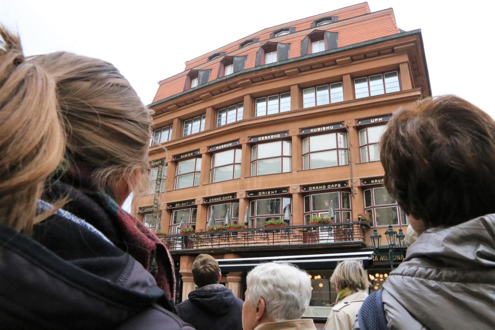 Zunächst bestaunen die Teilnehmer bei einer der Stadtführung Prags Treffpunkt mit Politgeschichte, ein Jugendstil-Bau, das Reformator-Hus-Denkmal und die  weltbekannte Uhr mit den Apostel-Figuren. Auch ein Theater, in dem Mozart zu Gast war, sowie ein Gebäude des Kubismus führten zu angeregten Gesprächen. Scheinbar still wird es trotz des Trubels drumherum, als Krizek eine Demonstration kurz vor der Wende zur Demokratie und Freiheit 1989 spricht: „Die Demonstranten kamen wegen einer Absperrung nicht mehr weiter – hinter ihnen wurde dann die Straße von weiteren Sicherheitskräften gesperrt“. Was dann passierte, ist in der deutschen Öffentlichkeit wenig bekannt: „Die Menschen versuchten sich durch eine winzige Seitengasse zu flüchten – vergeblich“. Einige wurden dort verprügelt. Ein Denkmal ehrt den Toten und die Verletzten vom 17. November 1989. Bronze-Hände, die noch heute mit Blumen geschmückt sind. Bei Knödeln und Spargelcreme-Suppe verdaute ein Teil der Gruppe die ersten Eindrücke: Im Etagencafé „Louvre“, in dem schon der Dichter Franz Kafka und der der Physiker Albert Einstein gespeist haben sollen.