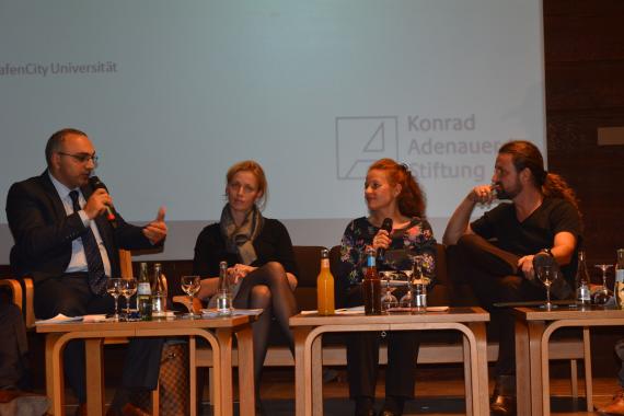 Nach dem informativen Faktencheck diskutierten die Panellisten ausgiebig über die aktuelle Situation, über die Zukunft und über Lösungs- und Verbesserungsvorschläge. Souverän geleitet wurde die Podiumsdiskussion von der Kommunikationsberaterin Britta Weck. Sowohl der Musiker Jan Melzer, der für das Hamburger Abendblatt im Rahmen der Flüchtlingskrise seine Gedanken zur Flüchtlingssituation in Tagebuchform veröffentlicht, als auch die stellvertretende Vorsitzende der CDU Hamburg, Karin Prien, mahnten vor zu großer Hysterie - sowohl im negativen als auch im positiven Sinne. Ein wenig mehr Nüchternheit würde gut tun, so waren sich die Panelisten einig.