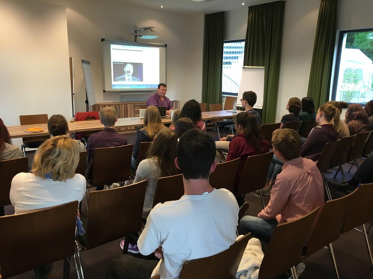 Detailliertere Informationen zum Politischen System der USA gab am nächsten Morgen noch einmal Dr. Denison, die verschiedenen Facetten des amerikanischen Wahlsystems der Vereinigten Staaten wurden prägnant erläutert. Primaries, Caucus, Swing States, Electoral College und Wahlmänner - der lange und komplizierte Weg zur Präsidentschaft wurde von den engagierten Jugendlichen schnell verstanden. Nachmittags fuhren wir dann in den Hochseilgarten Malente, entdeckten neue Grenzen und machten intensive Erfahrungen über den Hügeln der Holsteinischen Schweiz. Abgerundet wurde der Tag von einem amerikanischen BBQ.