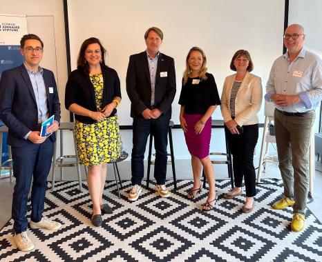 Die Meeresbiologin und KAS Fellow Antje Boetius zeigte eindrucksvolle Netzwerke von Meeresorganismen. Gerät ein Teil aus dem Gleichgewicht, habe das weitrechende Folgen. So habe die Erwärmung der oberen Meeresschichten und die zunehmende Verschmutzung auch in der Tiefe Konsequenzen für die Artenzusammensetzung und Artenvielfalt. Ozeane besser zu schützen, ist in unser aller Interesse. Denn der Ozean nimmt 93 Prozent der menschengemachten Erwärmung auf und liefert die Hälfte des Sauerstoffs, den wir atmen.