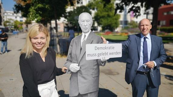 Das Team des Politischen Bildungsforums Hessen der Konrad-Adenauer-Stiftung begegnete in Wiesbaden Bürgerinnen und Bürgern am Internationalen Tag der Demokratie 15. September 2021.