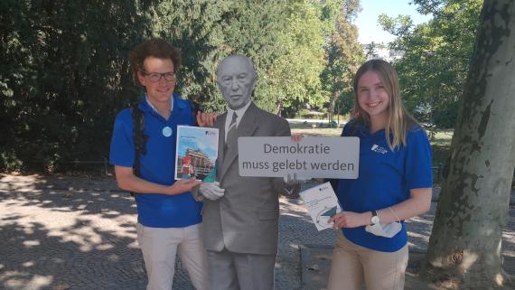 Eine Frage, die wir interessierten Personen stellten, lautet "Würden Sie für ein politisches Amt kandidieren?" Wir von der Adenauer-Stiftung helfen Ihnen gerne mit Bildungsangeboten und anderen Informationen. (Felix Kraft - links - und Kevin Bornath)
