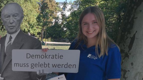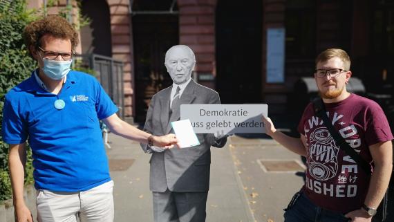 Das Team des Politischen Bildungsforums Hessen der Konrad-Adenauer-Stiftung begegnete in Wiesbaden Bürgerinnen und Bürgern am Internationalen Tag der Demokratie 15. September 2020.