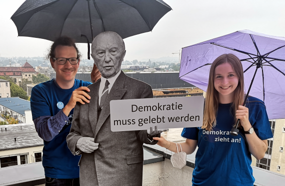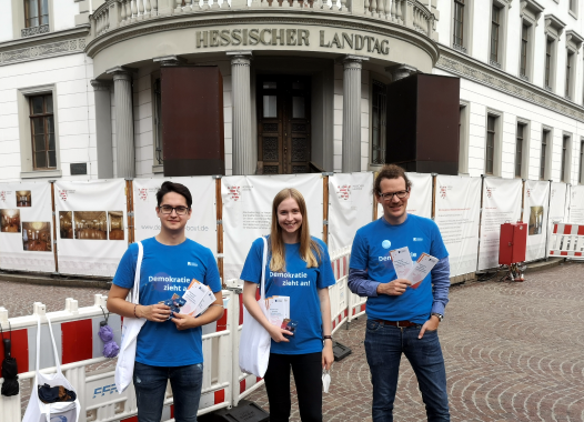 Das Team des Politischen Bildungsforums Hessen der Konrad-Adenauer-Stiftung begegnete in Wiesbaden Bürgerinnen und Bürgern am Internationalen Tag der Demokratie 15. September 2021.