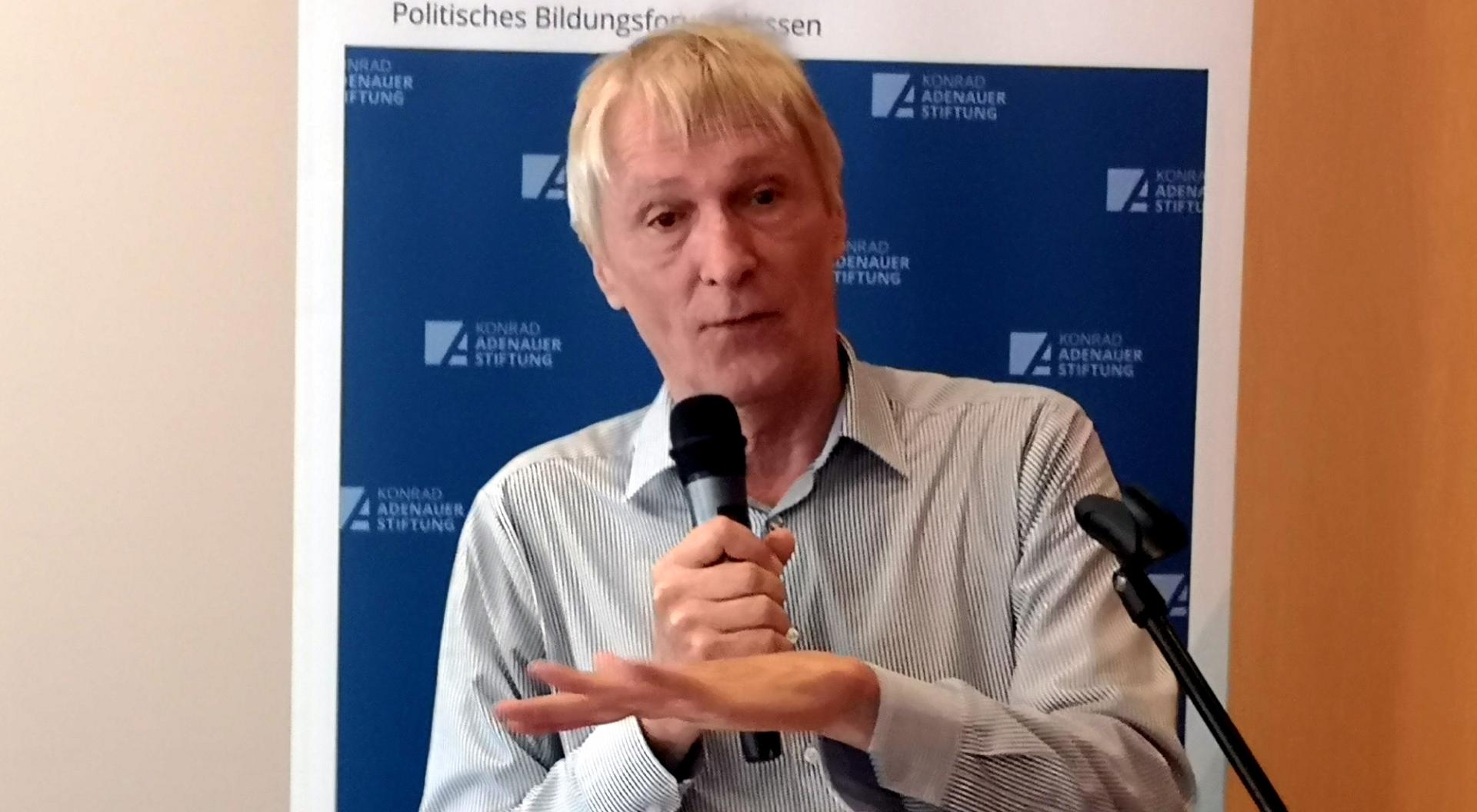 Dr. Hubertus Knabe, der an der Universität Würzburg lehrt, schilderte eindringlich "das Gefühl großer Stärke", das die Demonstranten "in diesem anrührenden Moment der Befreiung" wahrnahmen, als etwa am Potsdamer Platz "in Blickweite der Zonengrenze", wo sich Medienvertreter aus dem freien Teil Berlins versammelt hatten, um spannende Berichte zu senden, der Aufruf zum Generalstreik erfolgte: "Es gehörte ein unglaublicher Mut dazu, sich gegen diese Super-Diktatur zu erheben." Bevor gegen Mittag die sowjetischen Truppen eintrafen, besetzten die Demonstranten das "Haus der Ministerien".
