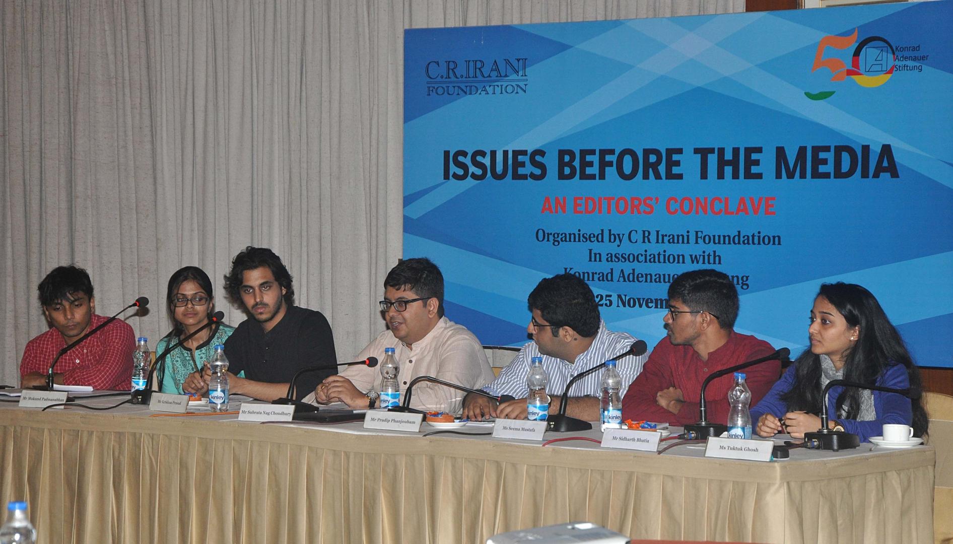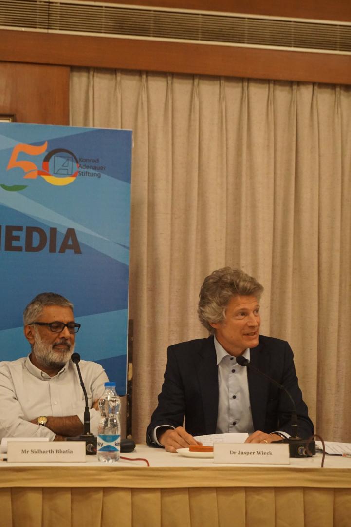 Der stellvertretende deutsche Botschafter, Dr. Jasper Wieck, wies auf die Beziehung zwischen journalistischem Talent, einem förderlichen sozialen Umfeld und unabhängigen Medien hin. Ravindra Kumar, Herausgeber von The Statesman, forderte seine Kollegen dazu auf, die eigenen Institutionen zu stärken und deren Konformität mit dem Gesetz zu gewährleisten. Krishna Prasad, ehemaliger Herausgeber des Outlook, gab selbstkritisch zu, dass die Medienhäuser derzeit zu wenig unbefangene und investigative Berichterstattung leisten würden.