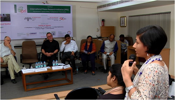 In der anschließenden Diskussion debattierten Dr. Christian Wagner, Senior Fellow der Stiftung Wissenschaft und Politik, Dr. N. Manoharan, Associate Professor an der Christ University, und die an verschiedenen Fachbereich des NIAS forschenden Prof. Narendar Pani, Prof. Anitha Kurup, Prof. Sindhu Radhakrishna sowie Divya Bharathi vom Stella Maris College über aktuelle Entwicklungen im Bereich Frieden und ihre Erwartungen an die neu gestartete Initiative. Zunächst konstatierten die Experten, dass die Welt eher weniger friedlich sei, als im letzten Jahrzehnt. Aufgrund wachsender Unsicherheit und Unvorhersehbarkeit im globalen Maßstab, steigender Ungleichheit auf lokaler und globaler Ebene sowie Auswirkungen von Umweltveränderungen durch den Klimawandel steige das Konfliktpotential eher als das es sinke. Wichtig sei es daher, bereits im Vorfeld Konflikte zu verhindern. Besonders Bildung nehme dabei eine wichtige Rolle ein. Das Lernen aus Erfolgen im Bereich Mediation von Konflikten und Versöhnung von Gesellschaften, aber auch die Stärkung von schwachen staatlichen Strukturen, besonders der Justiz, damit diese für Gerechtigkeit sorgen können sowie das Training von Sicherheitskräften im Bereich der Menschenrechte sind wichtige Schritte für einen nachhaltigen Frieden, so die Experten. Außerdem sei es wichtig bereits auf lokaler Ebene sowie im Schulunterricht wichtig, Toleranz zu vermitteln und so Konflikten auch im kleinen Maßstab vorzubeugen.