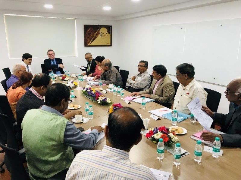 Unter der Moderation von Pankaj Madan, Programmkoordinator der KAS Indien, diskutierten Subrata Nag Choudhury von der Statesman Print Journalism School (SPJS), Devidas Ghodeswar von der Society for Sustainable Development (SSD), Sudhakar Ghosh vom Zentrum für Wirtschafts- und Sozialforschung (CESR-Purulia), LS Ghandi Doss und Lokesha vom Institut für Jugend und Entwicklung (IYD), Dayanand Tandon vom Zentrum für ländliches Unternehmertum und technische Bildung (CREATE), R Vijaykumar von der Madras Management Association (MMA), Manda Parikh vom Yuvak Vikas Trust (YVT), Mayank Upadhyay von der Indischen Gesellschaft für Gemeinschaftsbildung (ISCE), Uday Shankar von Vishwa Yuvak Kendra (VYK), Santosh Besra von der All India Santal Wohlfahrts- und Kulturgesellschaft (AISWACS) und CM Krishna von der PHD Industrie- und Handelskammer über die vorgeschlagene Agenda für den kommenden 36. JSDP 2019.