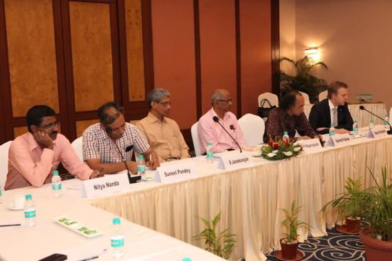 Wie Indiens Flüsse und Gewässer erfolgreich geschützt werden können, stand im Mittelpunkt der zweiten Session, geleitet durch Professor S. Janakarajan. Bhawna Tyagi, Forschungsreferent bei TERI, gab einen detaillierten Überblick der Fluss- und Grundwasserkonservierungs- und Schutzbemühungen in Indien. Die Bedeutung der Verfügbarkeit von Daten unterstrich Chandan Mahanta, Professor am Indian Institute of Technology (IIT) in Guwahati. Er kritisierte, dass manche Daten eine zweifelhafte Verlässlichkeit hätten und betonte die Notwendigkeit der Verifizierung. Nilanjan Ghosh, Senior Fellow und Leiter Wirtschaft bei der ORF kritisierte die mangelnden Kompetenzen von Flussgebietsgemeinschaften zur Rechtsdurchsetzung. Suresh Babu, Direktor Flussbecken und Wasserpolitik bei WWF Indien, diskutierte, inwiefern die im Ganges-Becken gesammelten Erfahrungen und angewandten Strategien verbessert und auf andere Ökosysteme im restlichen Land übertragen werden können. Narayan C. Ghosh vom Nationalen Institut für Hydrology in Roorkee, veranschaulichte im Rahmen seiner Präsentation die hydrogeologischen Eigenschaften von Flusssystemen und die Niederschlagsmuster in Indien visuell.