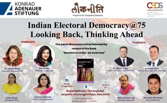 Lokniti-Centre for the Study of Developing Societies (CSDS) and the India Office of Konrad Adenauer Stiftung (KAS), organized a Panel Discussion, on ‘Indian Electoral Democracy@75: Looking Back, Thinking Ahead’ on Monday 22nd of August 2022, at New Delhi, between 1830 – 2030 (IST).