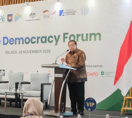 „Der Hauptfokus der Demokratie sollte sich nicht allein auf die Bezeichnung des Systems richten, sondern ebenso auf die Qualität seiner Umsetzung“, betonte der sechste Präsident der Republik Indonesien, Susilo Bambang Yudhoyono (SBY), in seiner Keynote-Rede beim Habibie Democracy Forum 2025. Das Forum findet jährlich mit Unterstützung der Konrad-Adenauer-Stiftung (KAS) als Hauptpartner in Zusammenarbeit mit The Habibie Center (THC) statt und widmete sich in diesem Jahr dem Thema „Die Verwirklichung ökologischer Gerechtigkeit und demokratischer Resilienz“.
