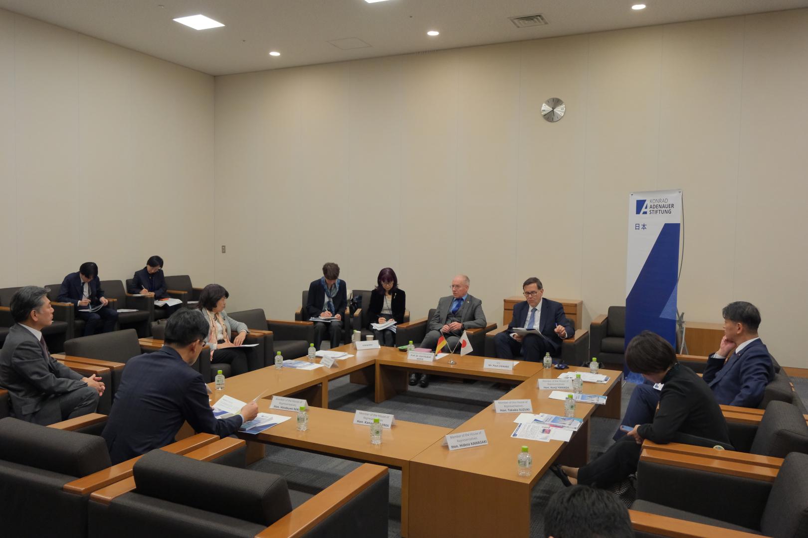 Im Rahmen des dreitägigen Besuchsprogramms nahm Prof. Korte auf Einladung von Botschafterin Petra Sigmund in der Residenz an einer hochrangigen Veranstaltung und Podiumsdiskussion teil. Im Parlament richtete die Konrad-Adenauer-Stiftung eine Gesprächsrunde mit Abgeordneten mehrerer Parteien und leitenden Mitarbeitern des Unterhauses aus. Während seines Besuchs traf Prof. Korte überdies mit Isao Kano, Präsident und CEO des Japan Center for International Exchange (JCIE), Prof. Kyoji Fukao, Vorsitzender des Research Institute of Economy, Trade and Industry (RIETI), leitenden Mitarbeitern des Ministeriums für Wirtschaft, Handel und Industrie (METI) sowie Vertretern deutscher und japanischer Unternehmen und Universitäten zusammen.