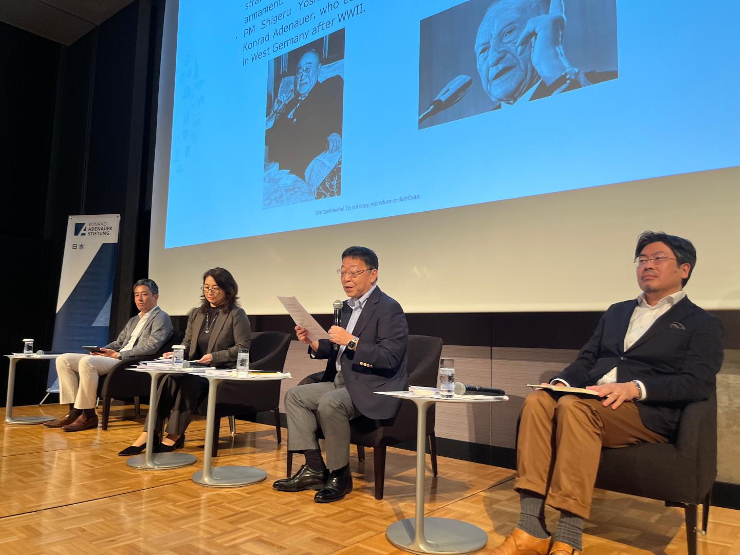 Joined by the Hon. Shintaro Ito, Minister of the Environment, the Hon. Masaharu Nakagawa, Member of the House of Representatives, the Hon. Shizuka Terata, Member of the House of Councillors, H.E. Ambassadors Ichiro Fujisaki and Takeshi Yagi as well as Martin Huth, Deputy Head of Mission of the German Embassy, the seminar highlighted Japan’s expanding strategic partnerships, as outlined in Japan’s National Security Strategy of December 2022: “Japan will build a multilayered network among its ally and like-minded countries, expand it, and strengthen deterrence. Thus, while utilizing frameworks such as the Japan-US-ROK, and Japan-US-Australia, Japan will enhance security cooperation with Australia, India, the ROK, European countries, ASEAN countries, Canada, NATO, EU, and others.”