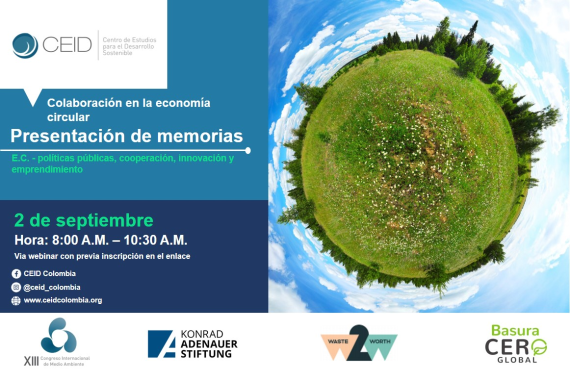 Am Donnerstag, dem 2. September fand die Präsentation des Memorandums zum XIII. Internationalen Umweltkongress zum Thema “Politische Strategien, Innovation, Kooperation und Unternehmertum“ statt, der von der Konrad-Adenauer-Stiftung KAS Kolumbien, dem CEID, der Organisation „Basura Cero Global“ und Waste2Worth im Oktober 2020 verantaltet wurde.