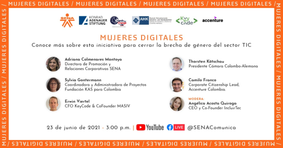 Am 23. Juni fand das Panel “Digitale Frauen” statt, das von der Deutsch-kolumbianischen Industrie- und Handelskammer AHK, dem staatlichen Berufsbildungsinstitut SENA und der Konrad-Adenauer-Stiftung Kolumbien KAS, organisiert wurde.