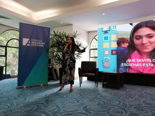 Der erste Vortrag wurde von der venezolanischen Politologin und Strategin für digitale politische Kommunikation, Gabriela Avendaño gehalten. Sie betonte zunächst, dass ein Politiker immer kohärent sein müsse zwischen dem was er sage und was er tue.