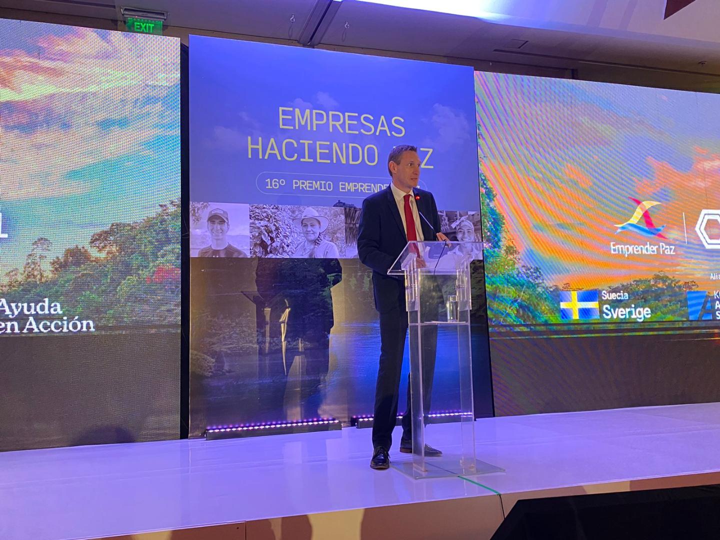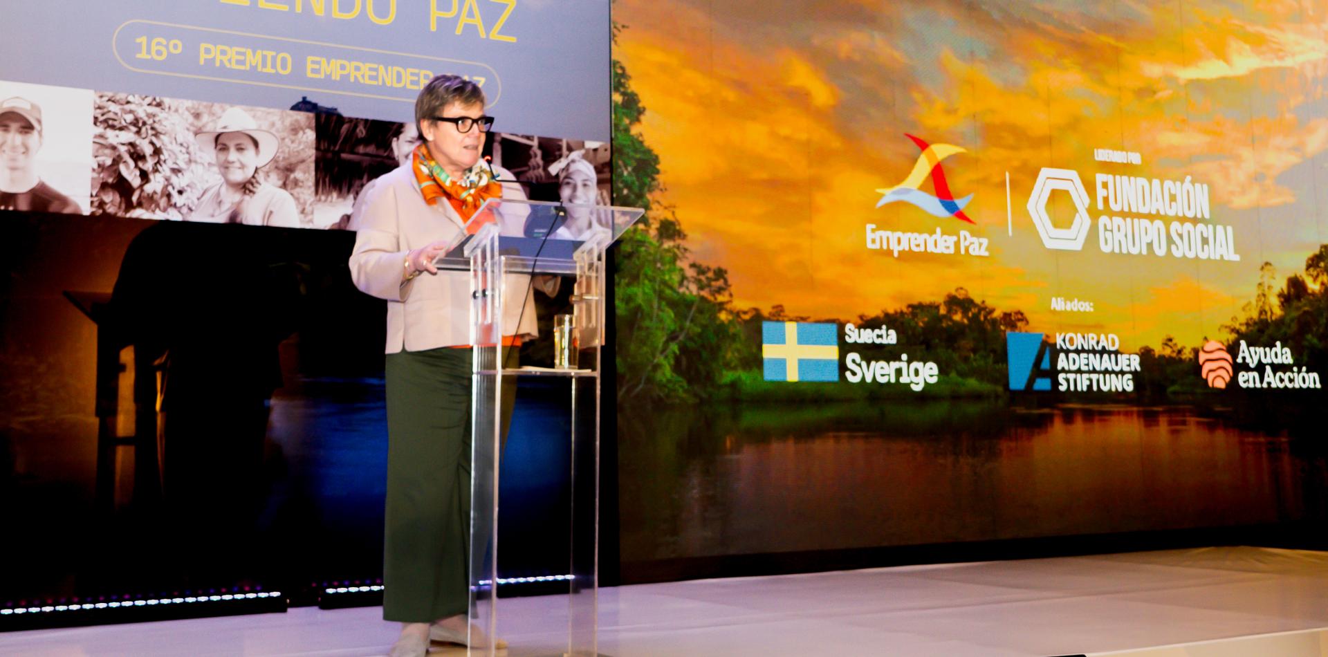 Die Veranstaltung begann mit der Übertragung der Grußworte der schwedischen Botschafterin, Helena Storm, die den Organisatoren dankte, die die Verleihung des Preises ermöglicht hatten, sowie allen Unternehmen, die sich an der Ausschreibung beteiligt hatten. Sie hob auch die wichtige Arbeit dieser Unternehmen bei der Friedenkonstruktion in den Regionen, für mehr Nachhaltigkeit und Entwicklung hervor.