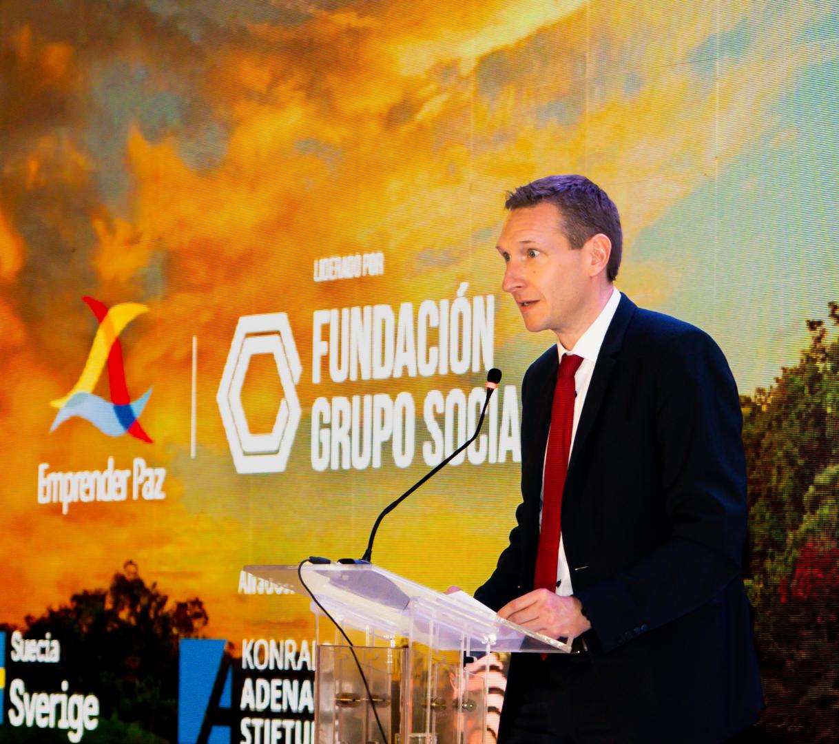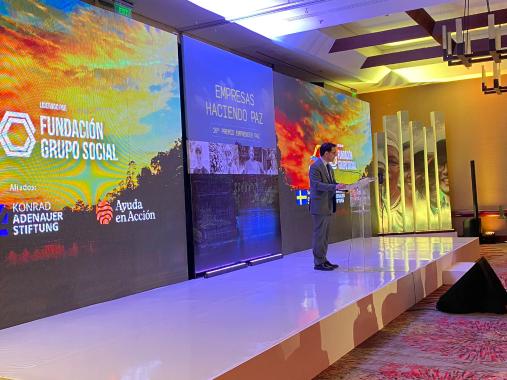 Der Repräsentant der KAS Kolumbien, Stefan Reith, präsentierte kurz die Arbeit der Stiftung zu Friedenskonstruktion und nachhaltiger Entwicklung, Haupt-Arbeitslinien der Finalisten der Auszeichnung „Emprender Paz“; gleichzeitig bezeichnete er die ausgewählten Organisationen des Privatsektors als Samen der Hoffnung und Inspiration für die neuen Generationen.