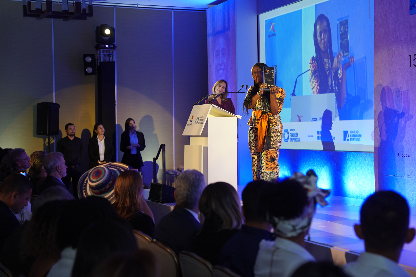 Die Gewinner dieser 15. Ausgabe des Premio Emprender Paz waren: auf dem vierten Platz Asianei, ein Unternehmen, das im Rahmen eines gemeinschaftlichen Modells Bio-Kaffee in der Serranía del Perijá und der Sierra Nevada de Santa Marta anbaut und die Gemeinden, die in diesen Gebieten leben, unterstützt. An dritter Stelle steht Casa Luker, ein Unternehmen, das in den letzten zehn Jahren in Zusammenarbeit mit Kleinproduzenten in verschiedenen Regionen des Landes den Kakaoanbau vorangetrieben hat. Der zweite Platz ging an das Unternehmen Kahai, das verschiedene Produkte wie kosmetische Öle und Proteine, die aus einem Baum des Amazonas-Gebietes gewonnen werden, vertreibt und gleichzeitig den Amazonas-Regenwald wieder aufforstet.
