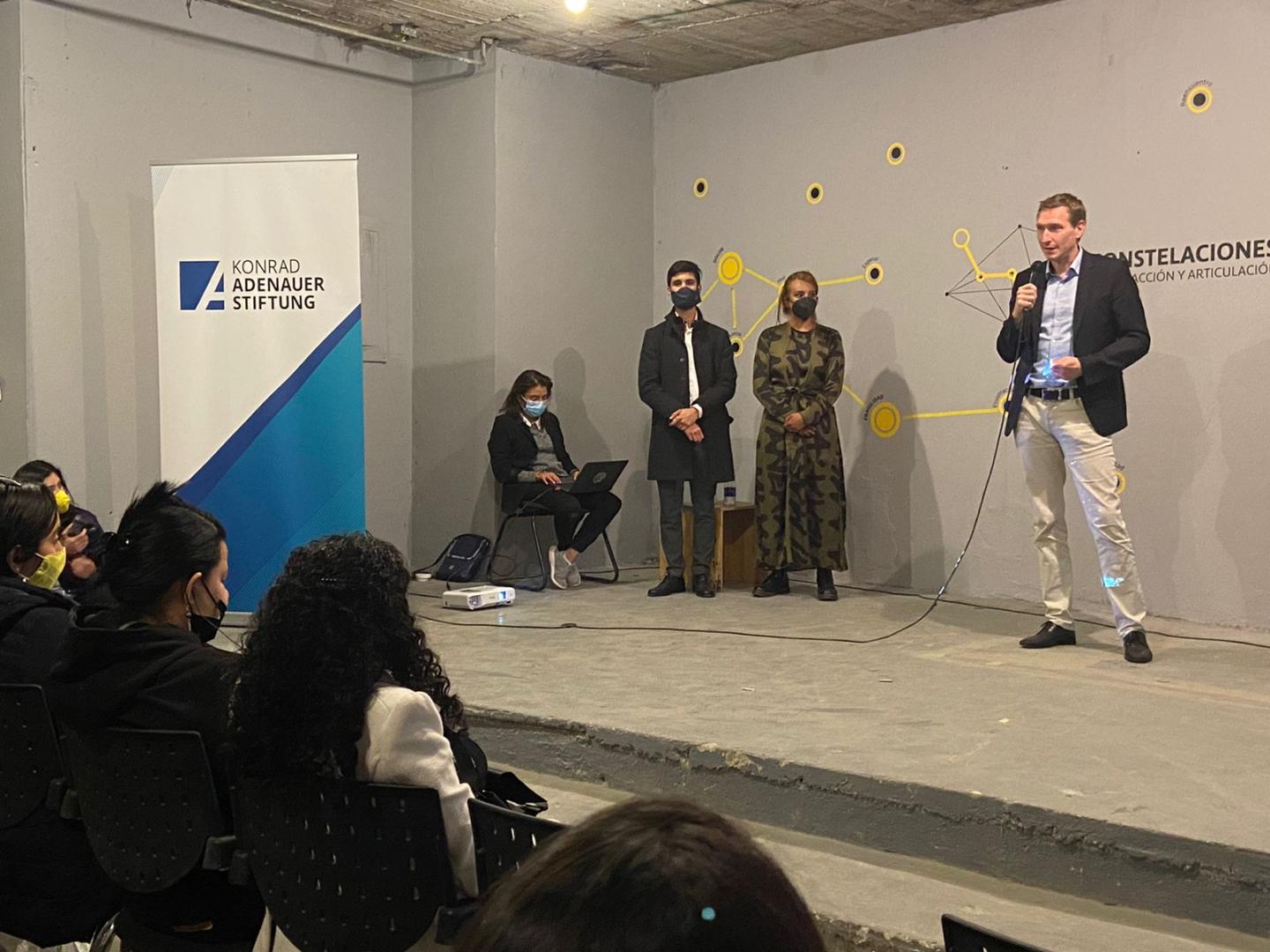 In seinen Grußworten wies der Koordinator von “Derecho a no obedecer” (DANO), Alejandro Daly, darauf hin, dass alle zwei Minuten eine Person in der Welt ihre Heimat aufgrund von kriegerischen Auseinandersetzungen, Auswirkungen des Klimawandels oder politischen Krisen verlassen müsse; dies sei besonders besorgniserregend weil dadurch Millionen von Menschen ihr zu Hause als etwas undefiniertes und unsicheres ansehen und außerdem die sozialen, psychologischen und politischen Folgen der Tatsache zu ertragen hätten, dass ihre Heimat „irgendein Ort“ auf der Welt sei. Daher sei das Projekt “Konstellationen” von großer Bedeutung für DANO und andere Organisationen, da man hier mit 45 Frauen in Cúcuta, Cali und Bogotá, arbeite, die zum größten Teil führende Positionen in Migrantenorganisationen innehaben.