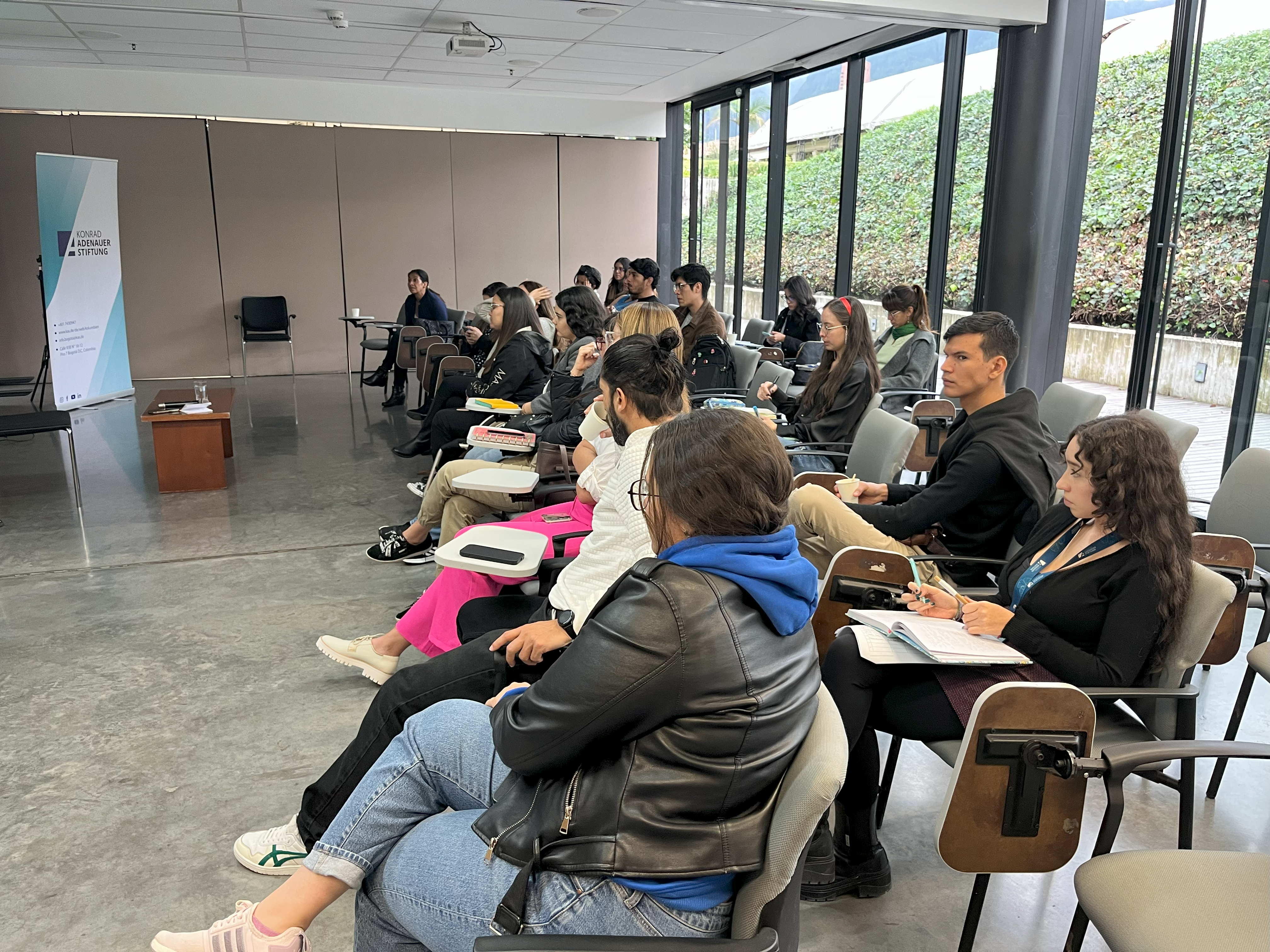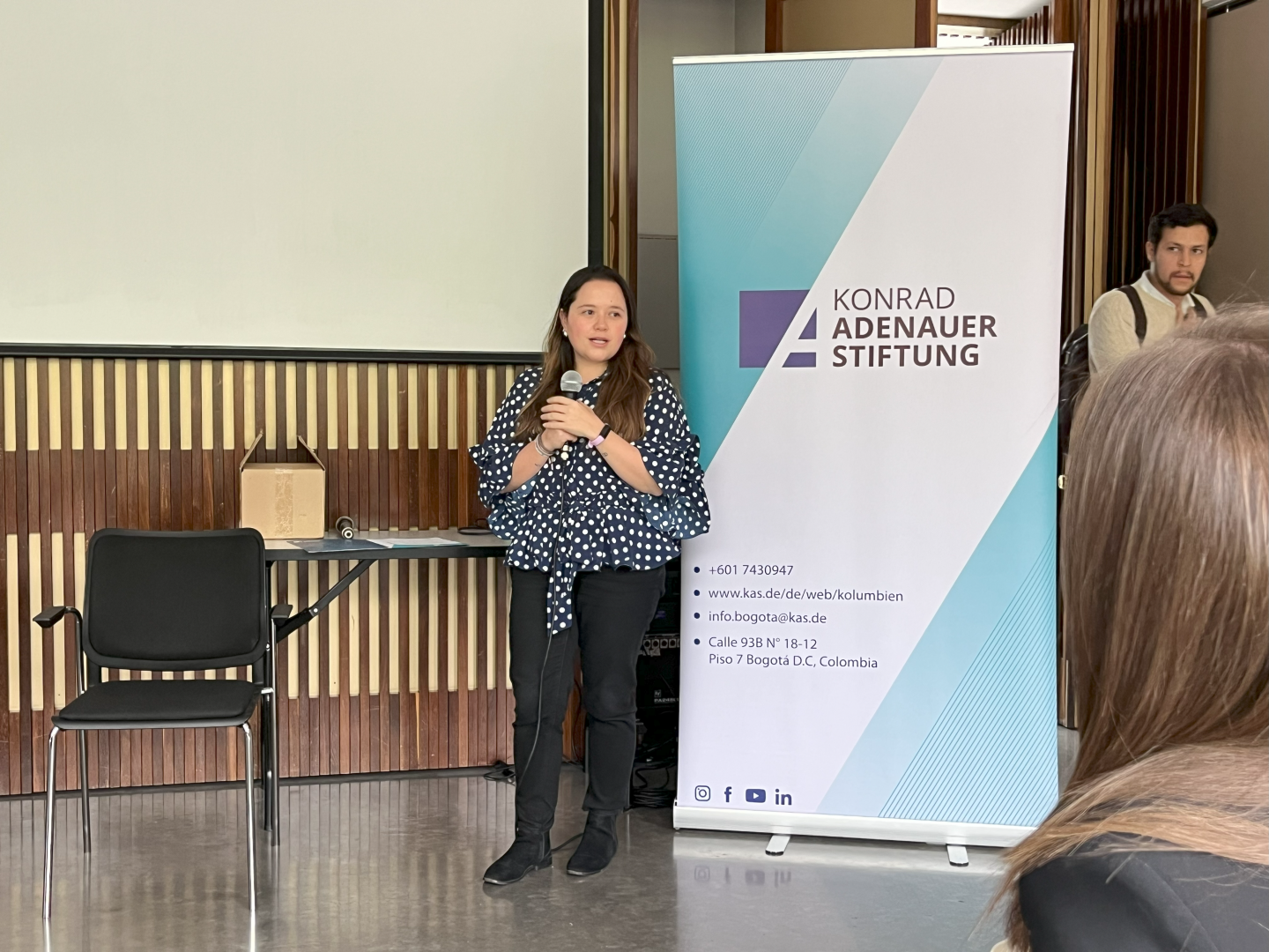 Natalia Roa sprach über die Erfahrungen Kolumbiens mit der “Justicia Transicional” (Übergangsjustiz) und der Friedenskonstruktion, und erklärte, wie diese Prozesse von einem gemeinsamen Nenner begleitet werden müssten sowie von Institutionen, die die Wahrheitssuche unterstützen ebenso wie wirkliche Wiedergutmachungen für die Opfer. Die Paneldiskussion endete mit einer Fragerunde und Überlegungen des Publikums und der Panel-teilnehmer.