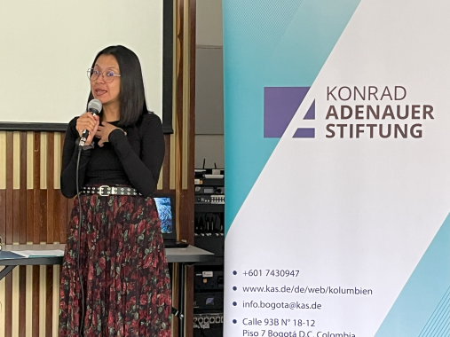 Die Veranstaltung wurde eröffnete mit den Grußworten der Projektkoordinatorin der KAS Kolumbien, María Paula León; der Direktorin des Zentrums für Erinnerung, Frieden und Versöhnung, Ana María Ruiz, sowie der Direktorin für Kolumbien der Organisation „Más Ciudadanos“, Genesis Núñez. Alle drei betonten die Rolle der Erinnerung bei der Konstruktion und Stärkung des sozialen Gefüges der von langandauernden Konflikten betroffenen Gesellschaften und hoben die Bedeutung der Migration in dem Zusammenhang hervor.