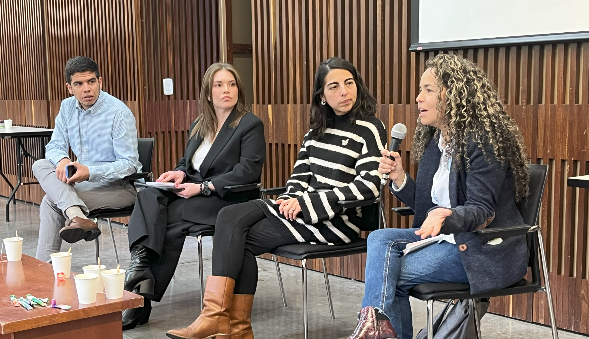 An der Paneldiskussion “Tejiendo Recuerdos, Construyendo futuros” (Erinnerungen stricken, die Zukunft gestalten) nahmen teil, die Professorin und Forscherin für Menschenrechte, Nastassja Rojas; die Direktorin für Kommunikationen und strategische Allianzen der Stiftung COMPAZ, Natalia Roa, sowie die Professorin der Fakultät für Kommunikation der Universidad Javeriana und Direktorin des Museums „Entre Ríos“ (zwischen Flüssen), Ginna Morelo.