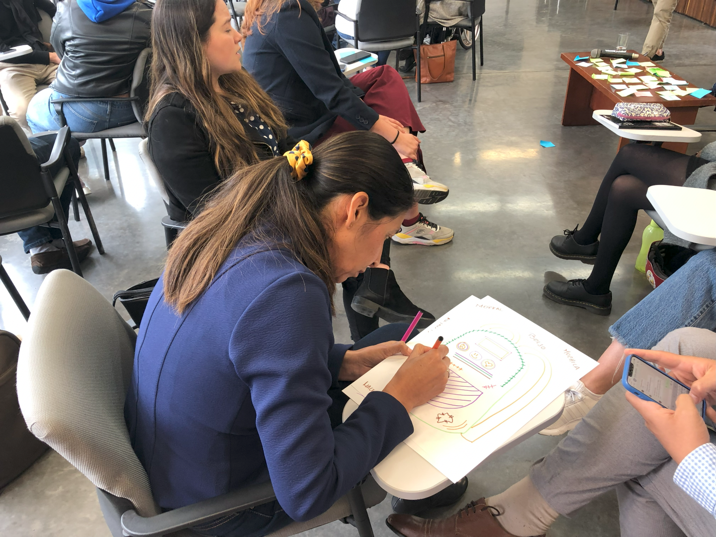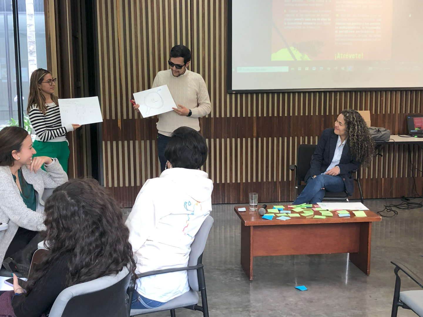 Im Anschluss fand ein praktischer Workshop unter der Leitung von Ginna Morelo statt; sie wiederholte zunächst die wichtigsten Aspekte für die Konstruktion einer historischen Erinnerung und forderte die Teilnehmer auf, eine aktive Rolle dabei zu übernehmen. Es folgte eine praktische Übung, bei der die Teilnehmer sehen konnten, wie ihre Vergangenheit ihre Zukunft beeinflusst.