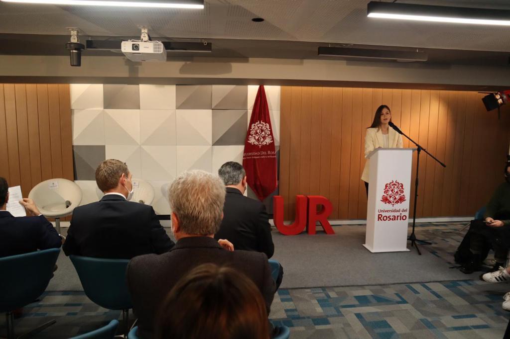 Der Repräsentant der KAS Kolumbien, Stefan Reith begrüßte Teilnehmer, Partner und Regierungsvertreter und betonte die Bedeutung der Kooperation mit dem „Dialogzentrum“ der Universität. Um Entwicklung und Demokratie zu fördern sei es unabdingbar Themen wie Sicherheit und Frieden anzusprechen. Dabei bezog sich Reith auch auf die Situation in der Ukraine nach der russischen Invasion und betonte, dass es unabdingbar sei, das Handeln der Regierung Russlands entschieden zurückzuweisen, um dadurch die Werte und Prinzipien der Demokratie weltweit zu schützen. Bei der Diskussion über solche Themen, müsse Kolumbien auch den Einfluss der Vorgänge in der Ukraine auf das Land verstehen, vor allem in einer so globalisierten Welt.