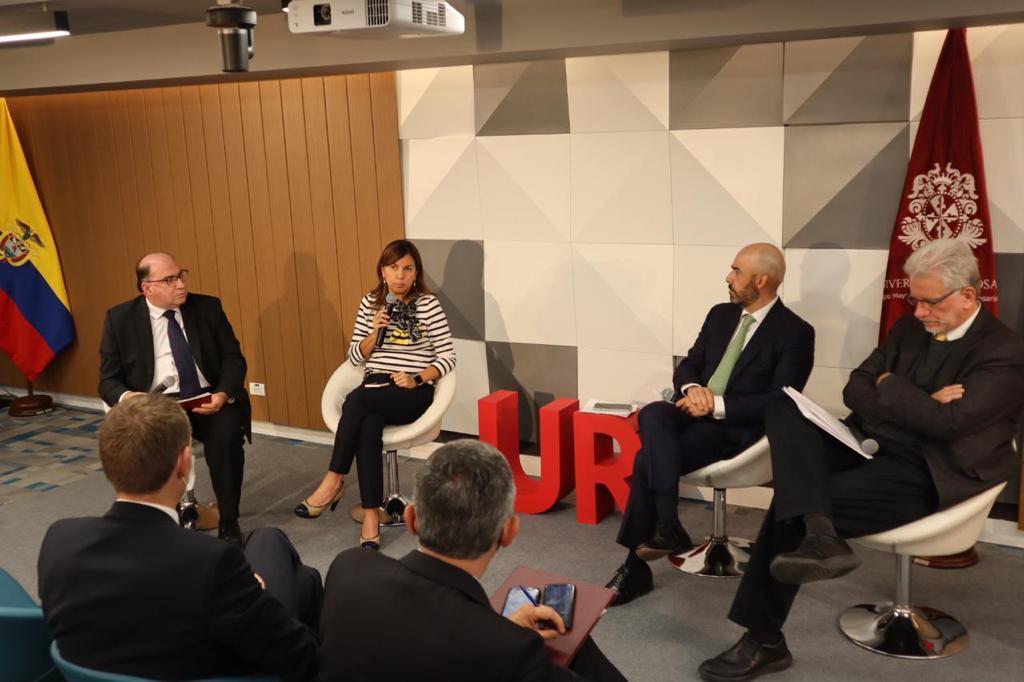 Im Anschluss folgte das erste Panel zum Thema “Bilanz der aktuellen Regierung” an dem der Verteidigungsminister, Diego Molano und der Minister für Finanzen und öffentliche Kredite, José Manuel Restrepo teilnahmen; Moderator war der Rektor der Universität. Zunächst betonte der Verteidigungsminister, dass während der aktuellen Legislaturperiode bedeutende Fortschritte im Bereich Sicherheit erlangt werden konnten; die ursprünglich über 3.000 Mitglieder von sieben illegalen bewaffneten Gruppierungen, die in Kolumbien operierten, konnten auf drei große Strukturen reduziert werden: der „Clan del Golfo“, die Dissidenten der demobilisierten FARC-Guerilla und die Guerilla ELN. Auch wies er auf die Erfolge im Bereich Sicherheit bei den Wahlen hin, vor allen durch den “Plan Democracia”, mit dem die Risiken im Wahlkampf und während der Wahlen selbst im gesamten Land reduziert werden sollen, damit die nächsten Wahlen reibungslos verlaufen. Letztendlich verwies der Minister noch auf das neue “Ley de Seguridad Ciudadana” (Gesetz zur Sicherheit der Bürger) hin und bezeichnete es als ein Instrument zur Reaktion auf die Probleme, die der Mikro-Drogenhandel für die Sicherheit in Kolumbien mit sich bringt.