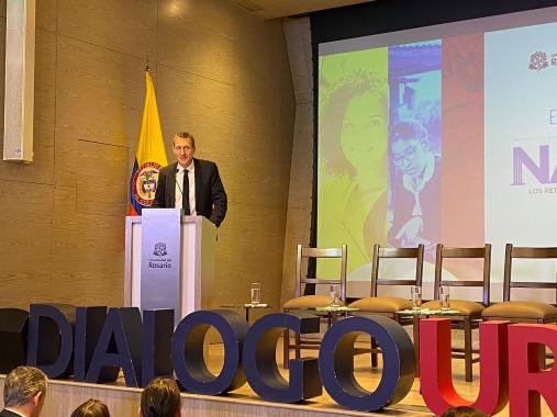 Das vierte und letzte Panel zum Thema “Sicherheit und Frieden” wurde vom Direktor des Dialogzentrums der Universidad del Rosario, Edulfo Peña moderiert; weitere Teilnehmer waren der ehemalige Verteidigungsminister und Bürgermeisterkandidat, Diego Molano, der Experte für Bürgersicherheit, Hugo Acero, die Senatorin Clara López und die Direktorin für Projekte in Lateinamerika IFIT, Martha Maya. Man diskutierte über den Wandel im Diskurs des Präsidenten Gustavo Petro, der weniger auf die humanitäre Sicherheit ausgerichtet sei, sondern mehr Bedeutung auf die Partizipation einzelner Bevölkerungsgruppen zur Garantie der physischen Sicherheit lege. Außerdem werde die allgemeine Unsicherheit auf die soziale Ungleichheit und die strukturellen Aspekte der kolumbianischen Gesellschaft zurückgeführt. Jedoch habe diese Verschiebung des Schwerpunktes auch zu einer Schwächung der Rolle der Streitkräfte und ihres Kampfes gegen das organisierte Verbrechen geführt. Weiterhin sprach man über die Bedeutung Gewinne aus kriminellen Aktionen aufzudecken, als Grundlage für die Anwendung des Prinzips der humanitären Sicherheit und die Entwicklung der Friedensverhandlungen mit illegalen bewaffneten Gruppen unter dem neuen Gesetz der Unterwerfung zu beobachten.