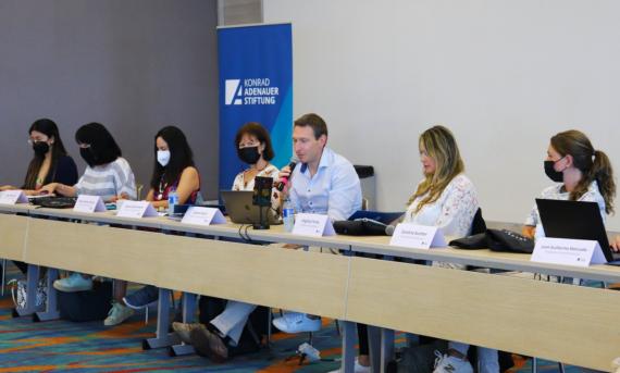 Der zweite Tag des Treffens startete mit einer Präsentation der Projektkoordinatoren der KAS Kolumbien, Laura Vargas und Juan Guillermo Moncada zum Thema Soziale Marktwirtschaft. Dabei betonten sie, dass die Grundprinzipien dieses Wirtschaftsmodells, wie freier Wettbewerb oder soziale Verantwortung eine wichtige Alternative für die wirtschaftliche Wiederbelebung sein könnten. Dazu sei zwar ein starker Staat notwendig, jedoch keine staatlichen Eingriffe in die Wirtschaft oder in die individuellen Rechte und Interessen der Bevölkerung; die Unternehmen hätten die Möglichkeit Gewinne zu erwirtschaften, ohne jedoch ihre soziale Verantwortung zu vernachlässigen und ein menschwürdiges Leben für alle Bürger zu ermöglichen; weiterhin sollte die Bevölkerung eine aktive Kontrolle über staatliche Organe und die Arbeit der Regierung ausüben können.