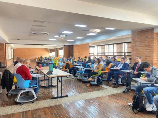 Die Veranstaltung begann mit den Grußworten des Professors der Universidad Javeriana, Dr. Eduardo Velosa, der sich bei den Studenten für ihre Teilnahme bedankte. Die Projektkoordinatorin der KAS Kolumbien, Andrea Valdelamar bezog sich auf die Arbeit der Stiftung in Kolumbien und betonte die Bedeutung solcher Diskussionsräume, in denen über die internationale Projektion des Landes diskutiert werden kann.