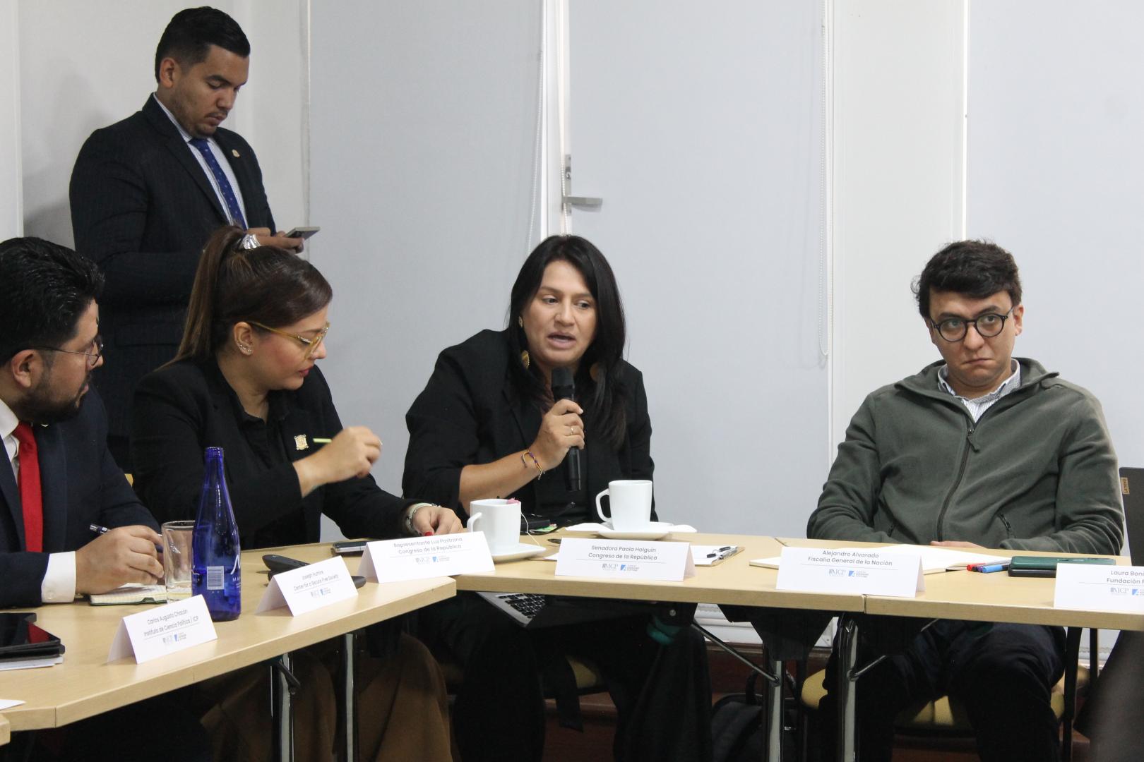 Die Senatorin Paola Holguín betonte, dass die Sicherheit der Bürger ein Grundrecht sei und Kolumbien seine Sicherheits- und Verteidigungspolitik darauf ausrichten müsse und das Konzept nicht nur entpolitisieren und von Ideologien befreien sollte, sondern auch eine Kontinuität der bereits begonnen Strategien gewährleisten müsse. In dem Zusammenhang verwies sie auf die Tatsache, dass über 70% aller Gemeinden des Landes durch die Präsenz bewaffneter illegaler Gruppen bedroht seien, während die Kapazitäten der Streitkräfte drastisch reduziert wurden und die Prozesse von Unterwerfung unter die geltenden Gesetze, Demobilisierung und Niederlegung der Waffen keiner klaren Definitionen in der aktuellen Friedenspolitik unterliegen.