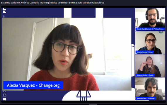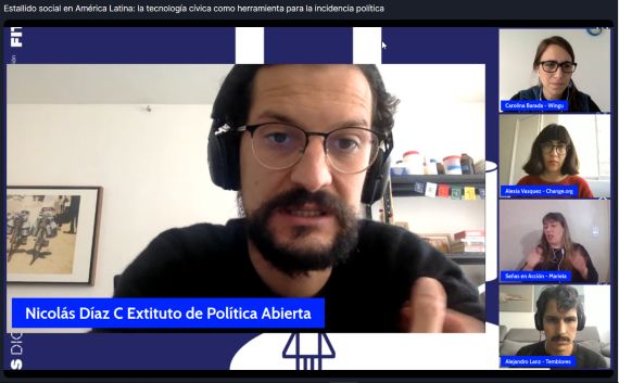 Zum Abschluss des Festivals für soziale Innovation und Technologie fand das Panel zum Thema “Soziale Explosion in Lateinamerika: Die zivile Technologie als Instrument zur politischen Einflussnahme”. Das Panel wurde von der Direktorin der Organisation WINGU, Carolina Barada moderiert; dabei gab sie zunächst einen kurzen Überblick über die Forderungen der Menschen in Lateinamerika. Der Direktor der NGO „Temblores de Colombia“, Alejandro Lanz, präsentierte die Entwicklung der sozialen Proteste in Kolumbien seit 2019; dabei führte er eine Reihe der bisher bekannt gewordenen Fälle von exzessiver Polizeigewalt während willkürlicher Festnahmen auf, die unter anderem zu schweren Augenverletzungen oder zum Tod der Häftlinge geführt haben. In dem Zusammenhang nannte er einerseits die Plattform “Policarpa”, eine Initiative die den Zugang zur Justiz für traditionell benachteiligte Personen und Bevölkerungsgruppen erleichtern soll, und andererseits die Plattform “GRITA” (Abkürzung für Aufzeichnung, Registrierung, Ermittlung und Hilfestellung bei Fällen von polizeilichem Machtmissbrauch).