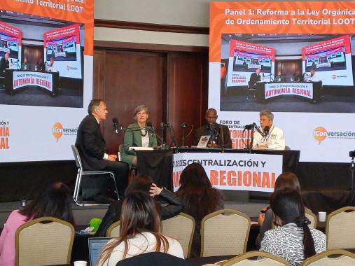 Weitere Teilnehmer des Panels waren der Direktor von “Oportunidad Estratégica”, Jorge Cárdenas; die Bürgerbeauftragte von Bogotá, Viviana Barberena; der Berater für allgemeine Koordination der Organisation indigener Völker des Amazonas, Juan Carlos Preciado und der Vertreter der Bewegung Cimarrón, Juan de Dios Mosquera. Man war sich einig, dass es einer Reform des Gesetzes zur Territorialen Neuordnung (LOOT) bedürfe; diese müsse flexibler und dynamischer gestaltet werden, um sich an die Gegebenheiten der einzelnen Regionen des Landes anzupassen. Darüber hinaus wurde auf die Defizite beim Aufbau des Staates hingewiesen, die sich auf die Raumplanung auswirken und die wiederum die Einbeziehung der verschiedenen Gemeinschaften, die auf dem nationalen Territorium leben, wie z. B. Afro-Deszendenten und indigene Völker, in den politisch-administrativen Bereich verhindert haben.