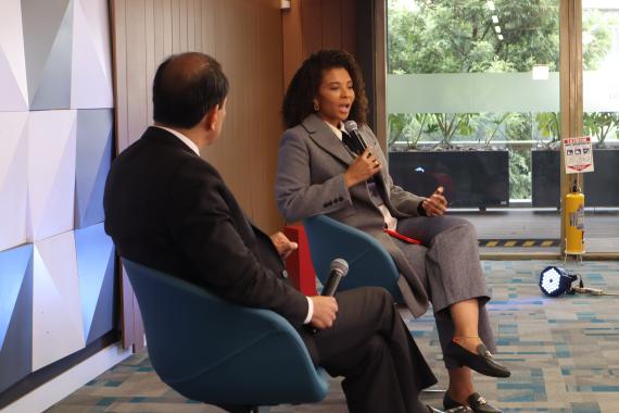 Die Veranstaltung begann mit den Grußworten des Mitglieds des Dialogzentrums der Universidad del Rosario, Maria Alejandra Ortiz; dabei betonte sie die Bemühungen der Universität zur Entwicklung Kolumbiens beizutragen, vor allem durch die Förderung von Debatten und die Schaffung von Dialogräumen zur demokratischen Partizipation.