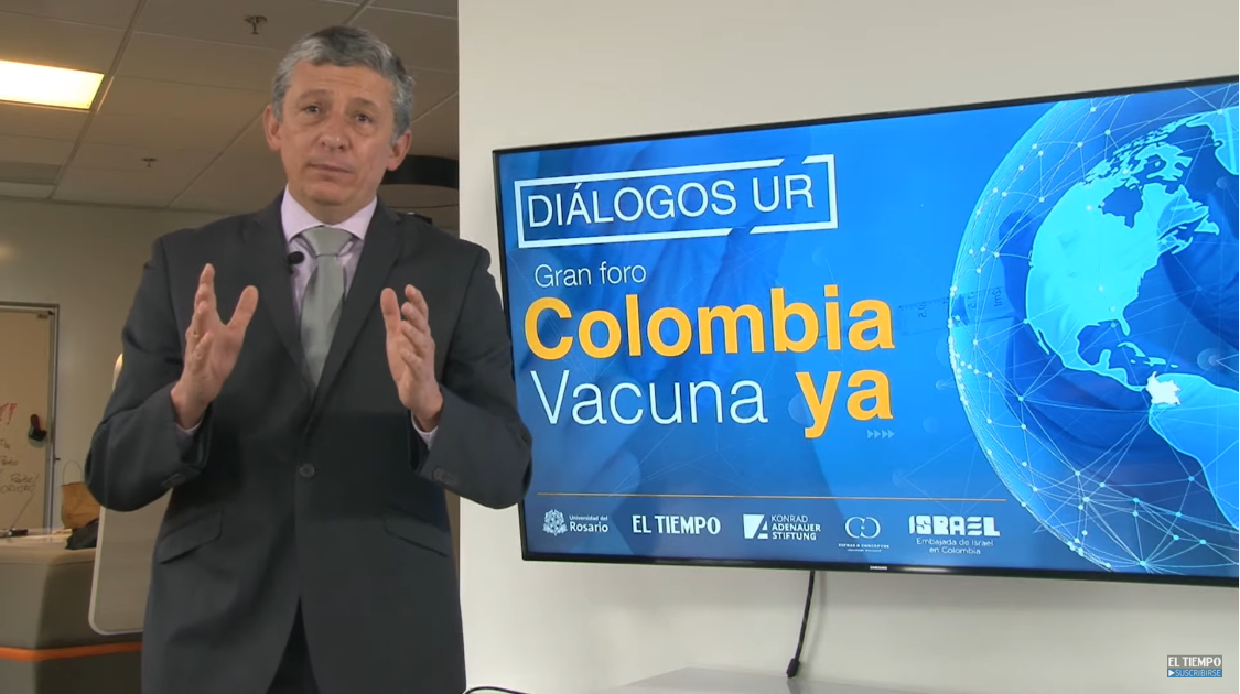 Als Einstieg in die Expertenrunde richtete der Redakteur für Gesundheitsfragen des Redaktionshauses El Tiempo, Carlos Francisco Suarez, eine Reihe von Fragen zum aktuellen Stand der Impfungen weltweit und zu den aktuellen Herausforderungen für die Gesundheitsbehörden in Kolumbien an die Panelteilnehmer. Zunächst wies der Präsident der „Academía Nacional de Medicina“, Herman Esguerra darauf hin, dass es einer globalen Immunisierung bedürfe, um die aktuelle Pandemie zu überwinden. Es sei jedoch möglich, dass durch die fehlende Herdenimmunität, in Zukunft neue Stadien der Ansteckung auftreten könnten. Der Chefberater der kolumbianischen Regierung, Carlos Álvarez erwähnte seinerseits, dass eine Verstärkung der Biosicherheitsmaßnahmen notwendig sei, um eine Verschlimmerung der Situation zu vermeiden. Auch seien mehr pädagogische Aufklärungsmaßnahmen notwendig, um Mythen und Volksglauben über das Virus und den Impfstoff zu zerstreuen. Im dritten Beitrag wies Carlos Pérez, Spezialist für Infektionskrankheiten, darauf hin, dass die Entwicklung der Pandemie von der strikten Einhaltung der Schutzmaßnahmen abhänge. Auch müsse die Zusammenarbeit mit dem privaten Sektor verstärkt werden, um den nationalen Impfplan zu unterstützen.