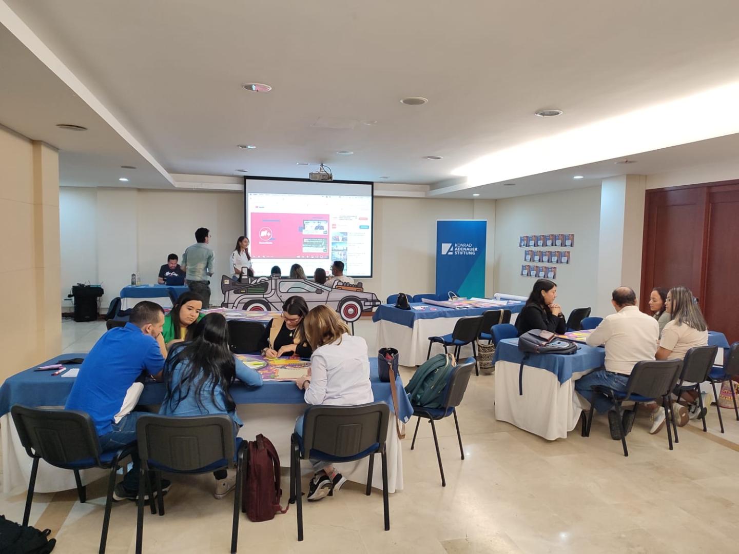 Zu Beginn des Workshops erläuterte die Beraterin von „Feeling Colombia“ und Expertin für Design Thinking, Alejandra Burbano das Format "Mi Boro", das darauf abzielt, eine retrospektive Übung mit den Instrumenten und Fähigkeiten jedes Teilnehmers durchzuführen, damit er durch seine Arbeit in seinem Umfeld etwas bewirken kann. In Gruppenarbeit wurde an hypothetischen Situationen gearbeitet und die Perspektiven der Teilnehmer sowie ihren möglichen Einfluss auf die Ergebnisse zur Lösung der gestellten Probleme gegenübergestellt. Zur Veranschaulichung setzte das Feeling-Team künstliche Intelligenz ein, um die Wahrnehmungen der einzelnen Gruppen in Bilder umzusetzen. Am Ende wurde anhand dieser Ergebnisse erklärt, wie die möglichen Lösungen in einem realen Szenario vermittelt werden könnten, durch einen effizienten Einsatz der Möglichkeiten eines open government durch die lokale Verwaltung.