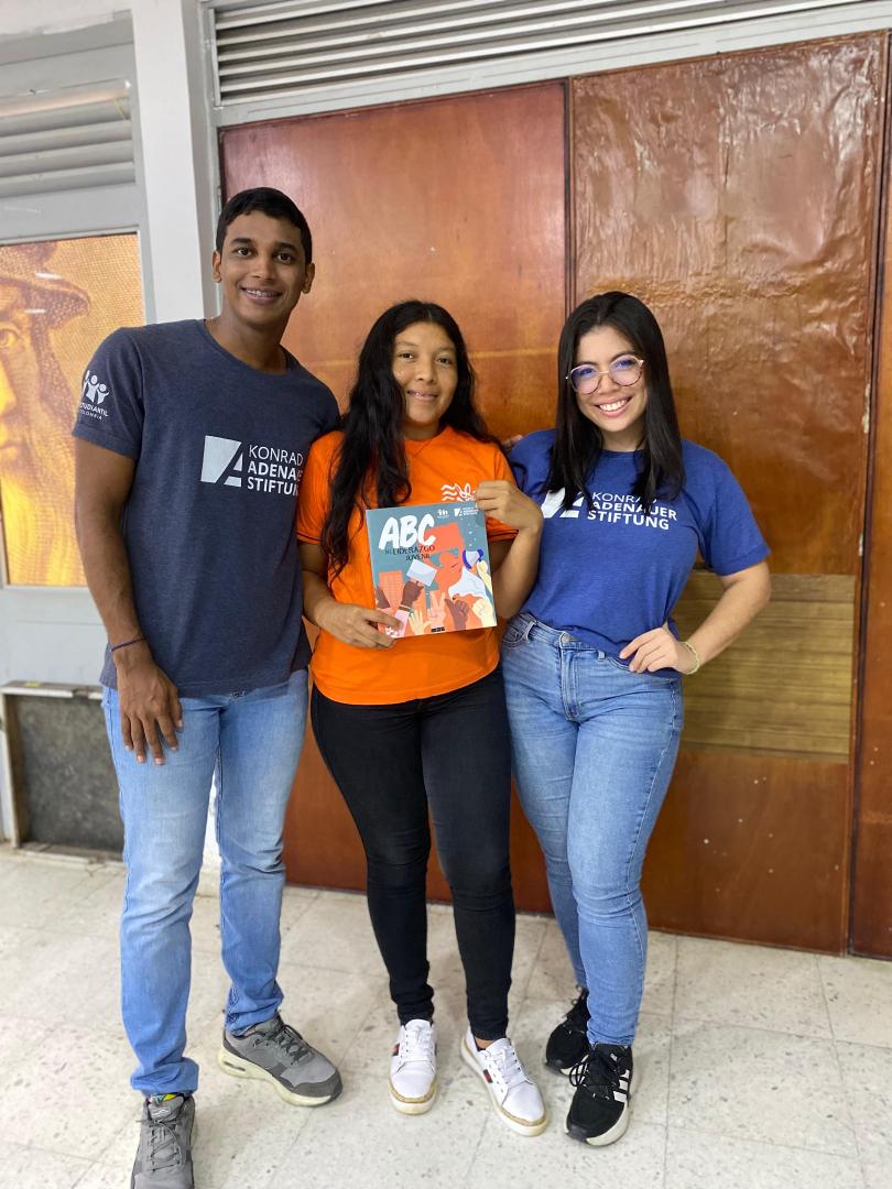 Die Diskussion wurde geleitet von den Mitgliedern des Studenten-Netzwerks der KAS und Ko-Autoren des Handbuchs, Paola Eljaik, Joshua Aguilar und Miguel Polania. Mithilfe der Methodologie ABC vermittelten sie Elemente der Partizipation Jugendlicher, politische Alphabetisierung für Dummies, und die aktive Rolle der Jugend bei der Entscheidungsfindung; dabei verwiesen sie auch auf das Engagement der Stiftung zur Demokratieförderung in Kolumbien und die Entwicklung von Instrumenten für Jugendlichen für eine aktive Ausübung der Demokratie.