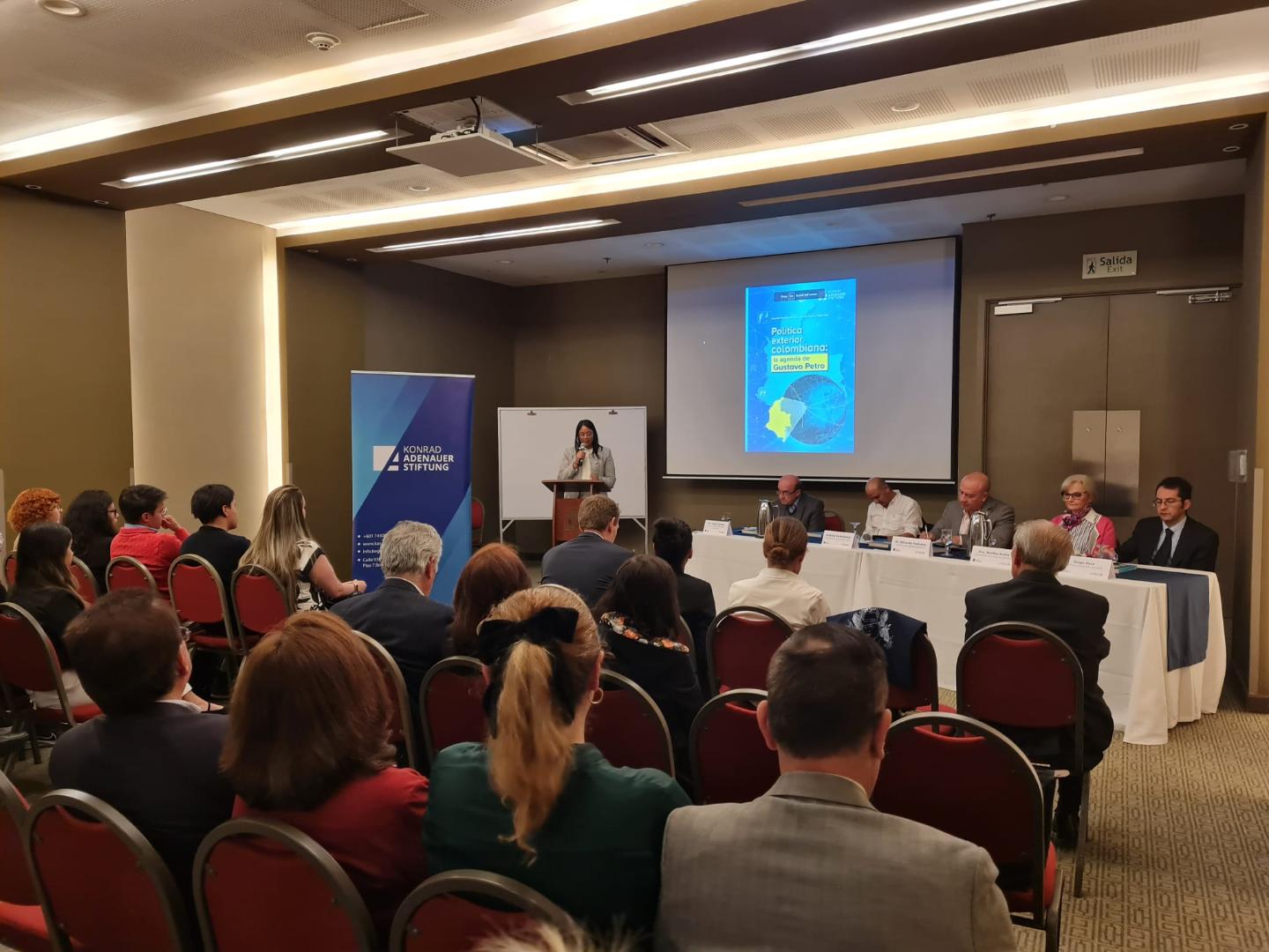 Die Projektkoordinatorin der KAS, Andrea Valdelamar präsentierte die Autoren und Kommentatoren der Publikation und eröffnete den Dialog zum tieferen Verständnis des Buches.