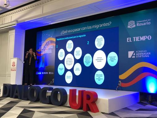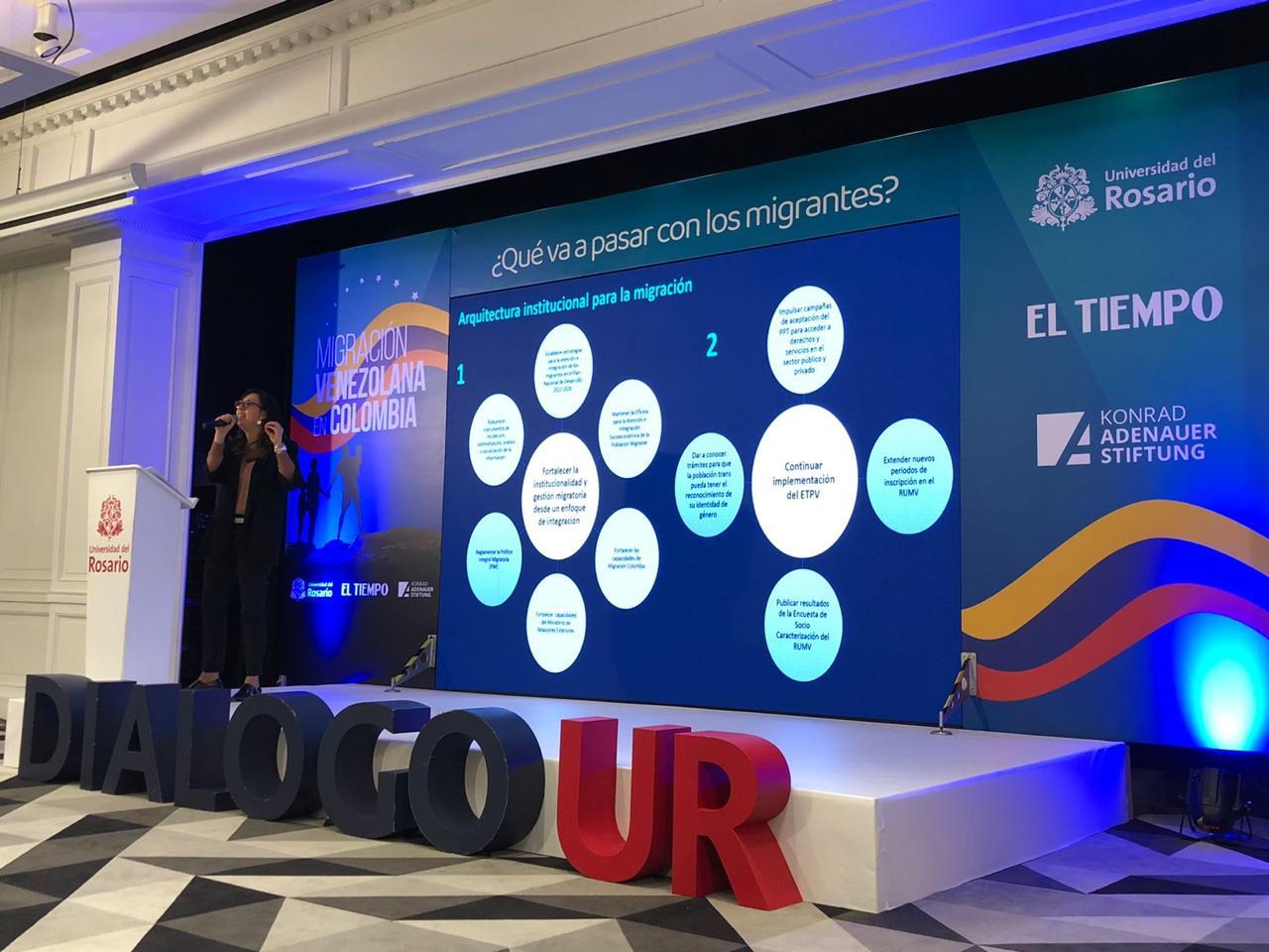 Más adelante, César Caballero, gerente de Cifras y Conceptos, presentó la gran encuesta nacional de migración, una encuesta realizada en alianza con la Universidad del Rosario y la Fundación Konrad Adenauer. Este proyecto mostró variables nuevas como la percepción a instituciones, aspiraciones de permanencia, percepción de acogida, dificultades en acceso a salud, vivienda y trabajo, salud mental, entre otras. Caballero señaló que esta encuesta representa un gran esfuerzo para el entendimiento del impacto de la migración venezolana y los objetivos a los que deben estar dirigidos las acciones a tomar.