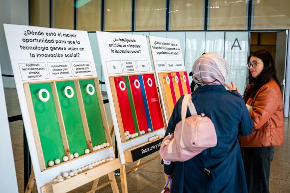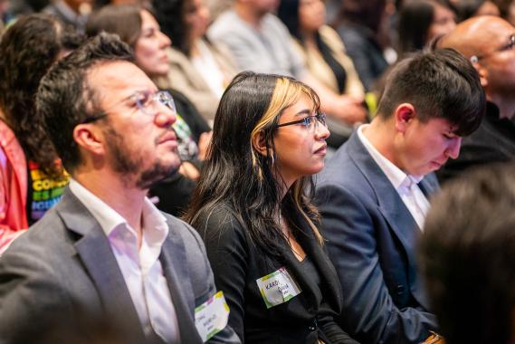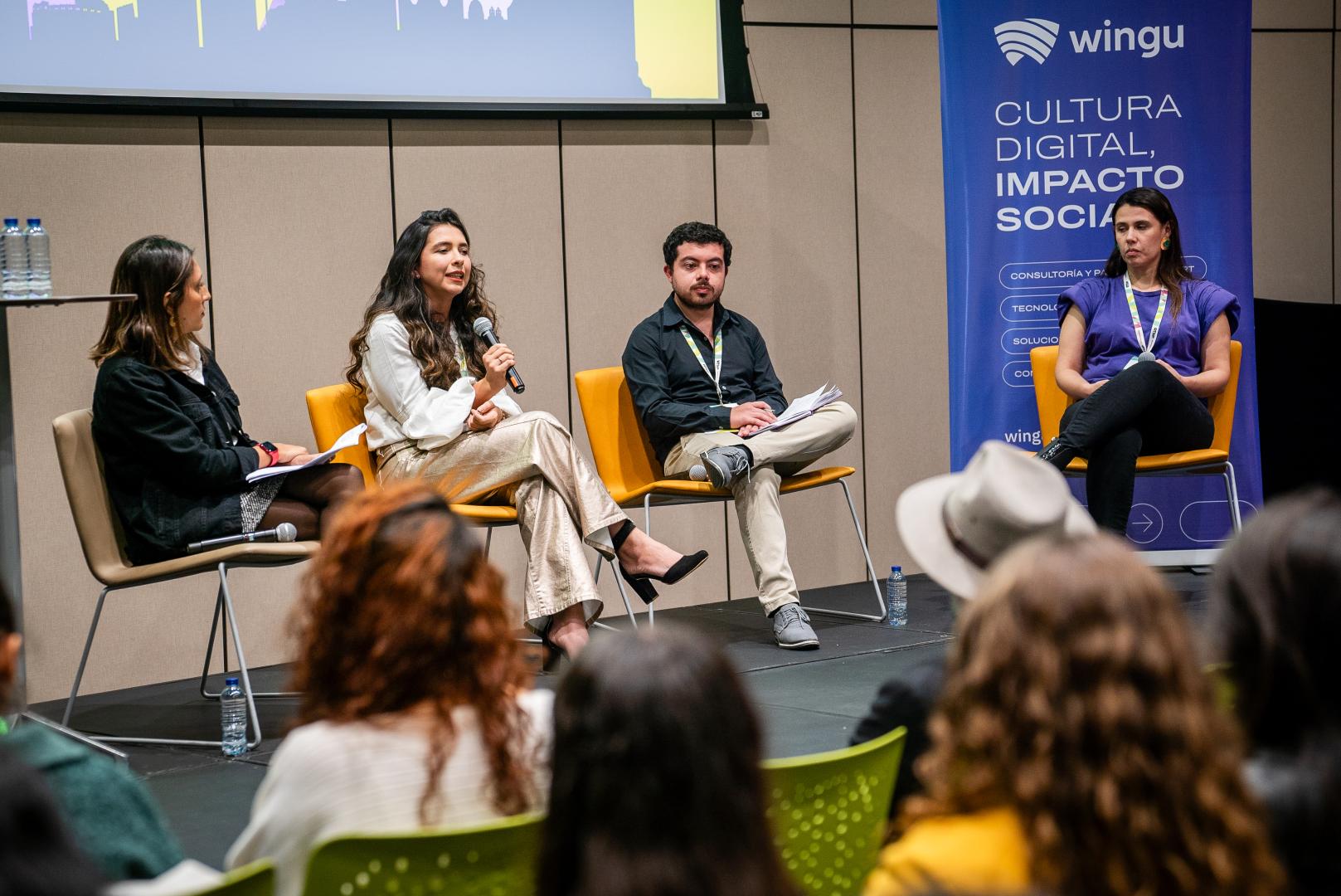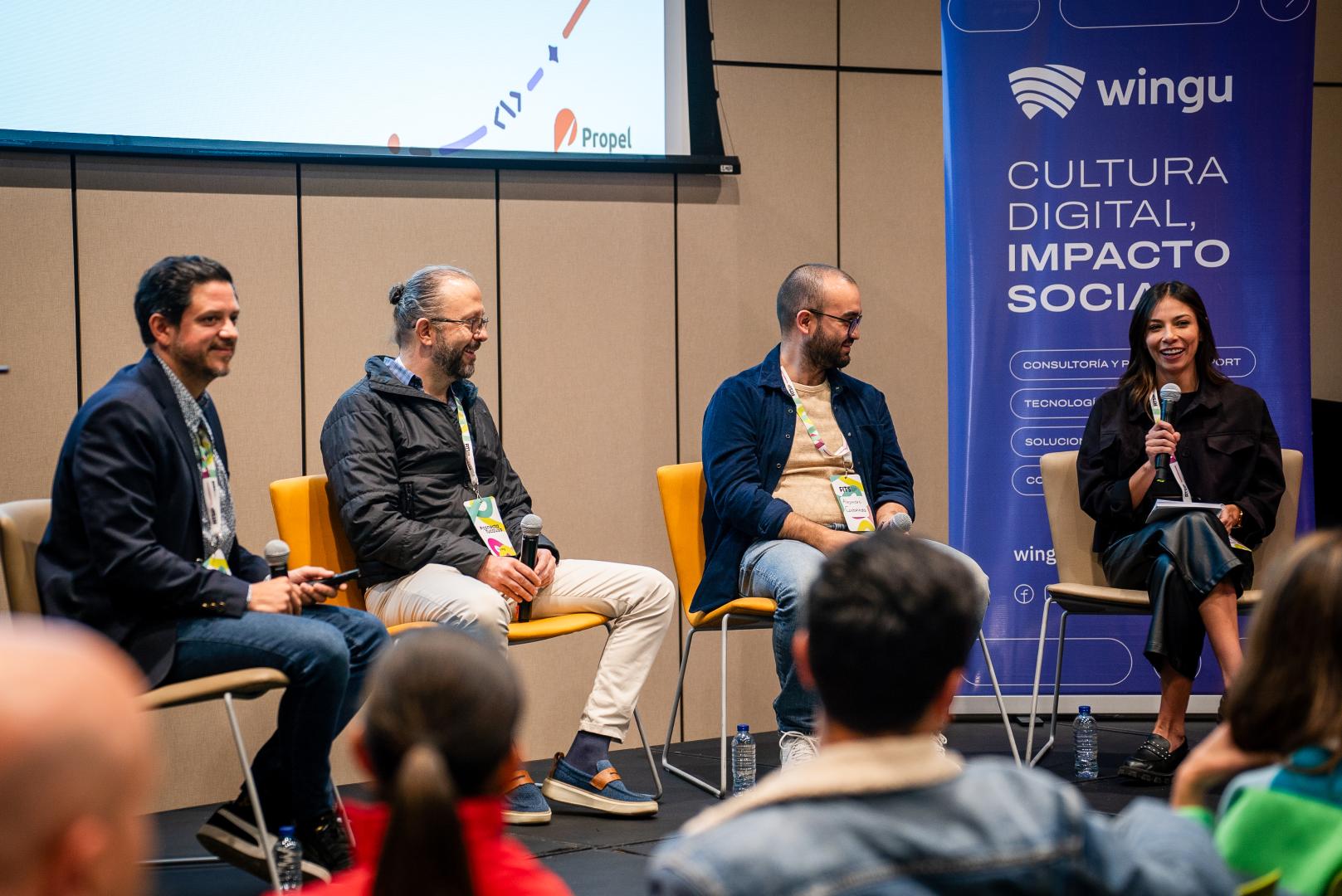 Im Auditorium fand ein Vortrag des Direktors für Entwicklung und Allianzen der Organisation PROPEL, Santiago Torres statt, zum Thema “Invierte la ecuación: convierte tus retos de impacto en proyectos de tecnología” (Kehren Sie die Gleichung um: Verwandeln Sie Herausforderungen in Technologieprojekte). Die Direktorin für Beziehungen ohne Gewinnabsicht der Stiftung “Tech to the Rescue”, Carol Sanchez; der Vertreter von Software One, Edgar Helou und Alejandro Castañeda vom Eltern-Netzwerk Red PaPaz diskutierten darüber, wie soziale Organisationen es geschafft haben, komplexe Herausforderungen durch den Einsatz von technologischen Strategien zu überwinden.