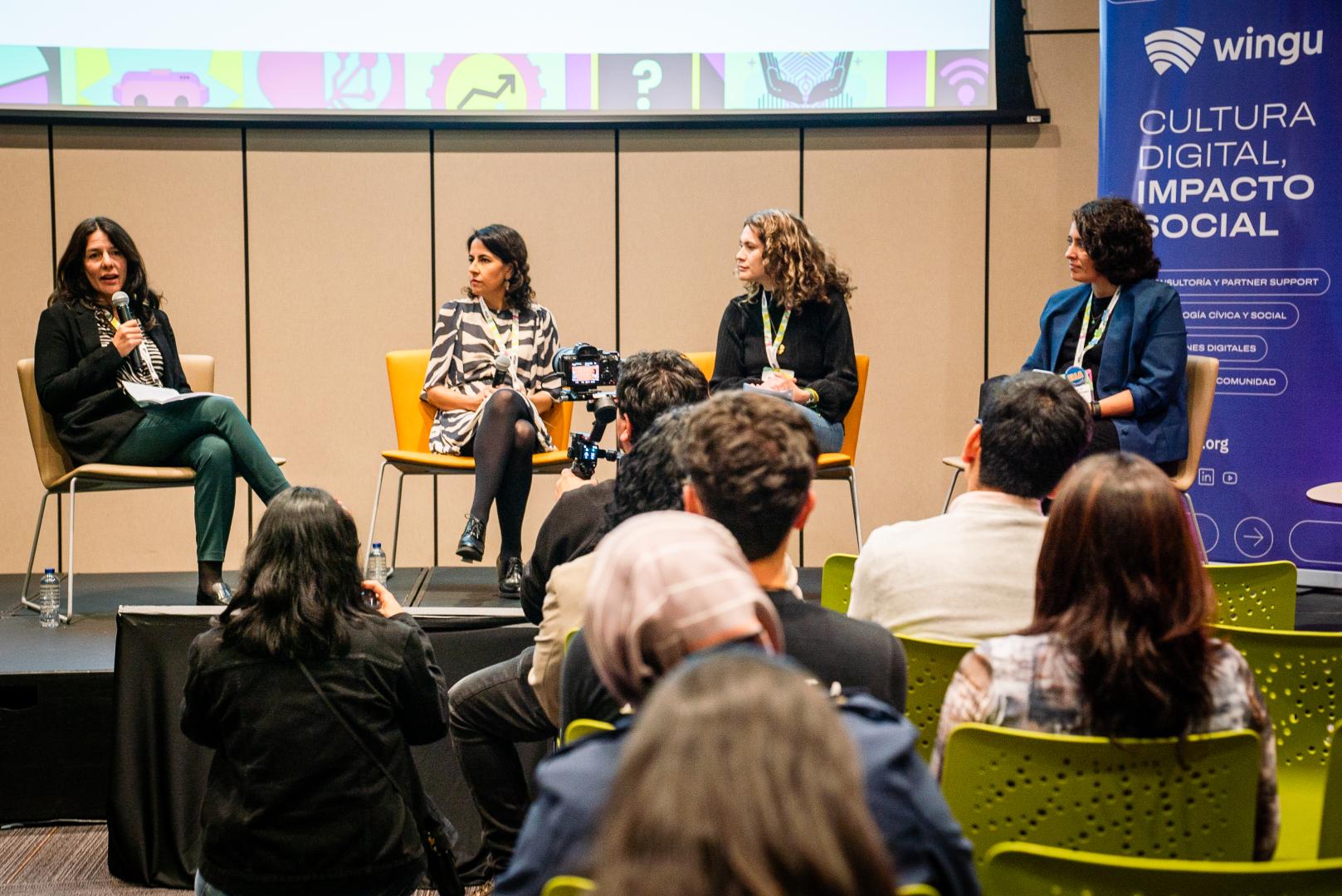 An dem zweiten Panel zum Thema “Cuidado 4.0: innovación para el bienestar” (Pflege 4.0: Innovation für das Wohlbefinden) nahmen teil, die Vertreterin des Frauendezernats des Bürgermeisteramts von Bogotá, Camila Gómez; die Vertreterin der Stiftung „Arturo Sesana“ María Claudia Santos; die Repräsentantin von GLYA, Ximena Ruget sowie Verónica Nunes von WINGU. Es wurde über die Innovationen diskutiert, die zu mehr Aufmerksamkeit für die Probleme und das Wohlbefinden der Bürger beitragen könnten und alternative Lösungen für die Betreuung im digitalen Zeitalter bieten.