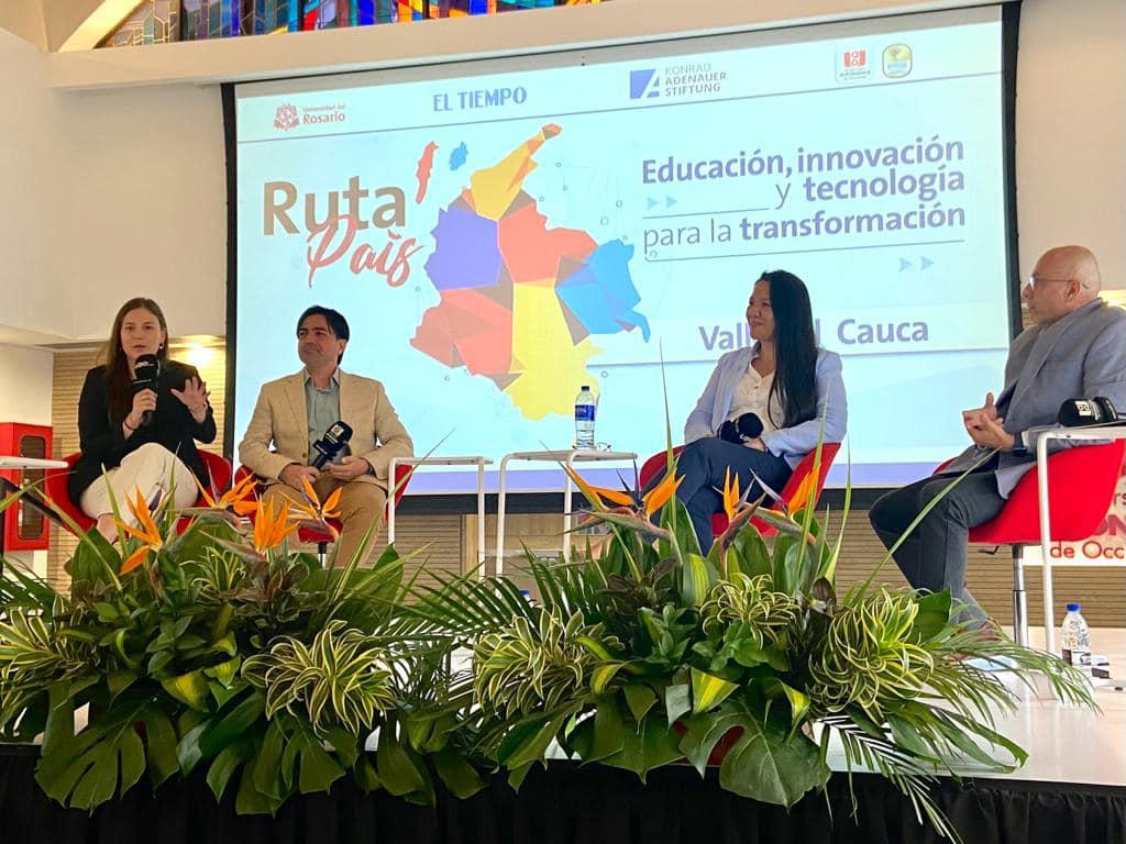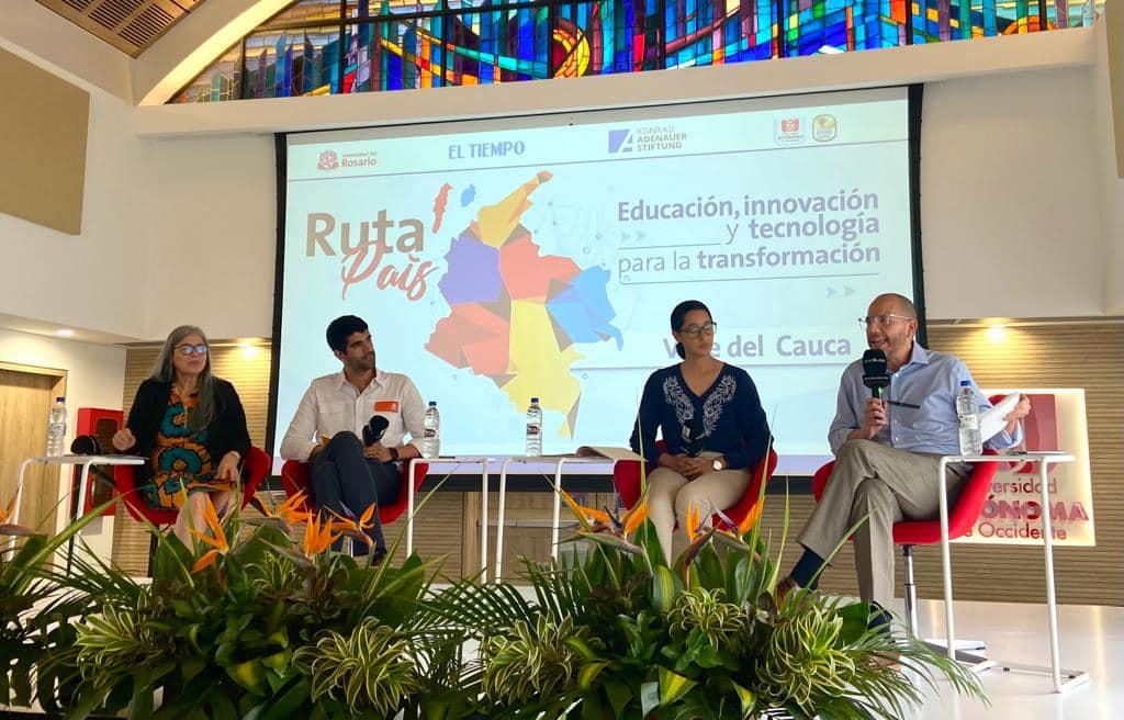 Das folgende Panel befasste sich mit der Rolle der Universitäten bei der regionalen Transformation. An diesem Gespräch nahmen Claudia Zúñiga, Direktorin der Universidades para la Innovación de Valle del Cauca, Claudia Dulce Romero, Direktorin für Soziale Projektion an der Universidad del Rosario und Iber James Quiñones Cadena, Regionaldirektor des SENA Valle del Cauca, teil; Moderator war der Vizerektor der Universidad Autónoma de Occidente, Jesús David Cardona. Die Diskussion konzentrierte sich auf Maßnahmen der öffentlichen Politik zur Förderung von Wissenschaft und Technologie in der Sekundar- und Hochschulbildung; weitere Themen waren die Zusammenarbeit zwischen den Universitäten und einige Strategien zur Entwicklung konkreter Lösungen für die Anliegen der Bürger bei der Gründung von Unternehmen und in der Forschung zur Sprache. Die Bedürfnisse junger Menschen im Hinblick auf Ausbildungsprogramme müssen dabei besonders beachtet werden.