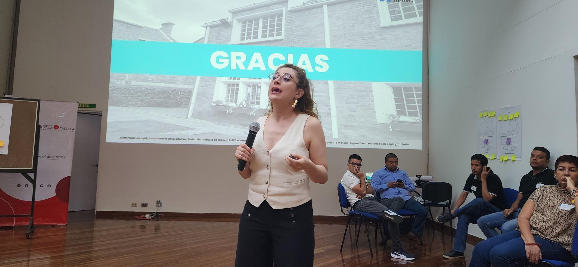 Die Projektkoordinatorin der KAS Kolumbien, Andrea Valdelamar, erwähnte in ihren Grußworten, dass sich die Stiftung vor allem auf fünf Arbeitslinien konzentriere: Stärkung demokratischer Institutionen, Friedenskonstruktion, nachhaltige Entwicklung, Dezentralisierung und Sicherheit. Diese Bereiche seien entscheidend für die Mission der KAS, die Demokratie in Kolumbien zu stärken; daher sei dieser Workshop von großer Bedeutung.