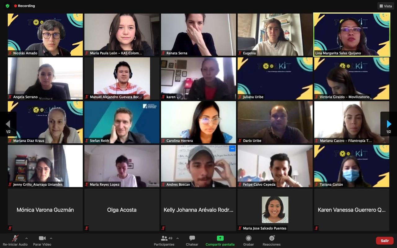 Die Projektdirektorin des “Movilizatorio”, Lina Margarita Salas moderierte die Veranstaltung. In seinen Grußworten betonte der Repräsentant der KAS Kolumbien, Stefan Reith die Bedeutung eines solchen “Toolkits” für gemeinschaftliche Führung als wichtiges Instrument zur Förderung der politischen Einflussnahme, demokratischer Partizipation verschiedener Führungspersonen und der Initiativen für ein „open government“ auf lokaler Ebene. Die Direktorin des „Movilizatorio“, Juliana Uribe erklärte, dass die Organisation eine Reihe von Instrumenten mit kollektiven Einfluss entwickelt habe, die auf neue Technologien, digitale Kommunikation und Innovation ausgerichtet sind und im Rahmen des „Toolkits“ zur Überwindung von Problemen bei der Arbeit mit Kommunen beitragen.