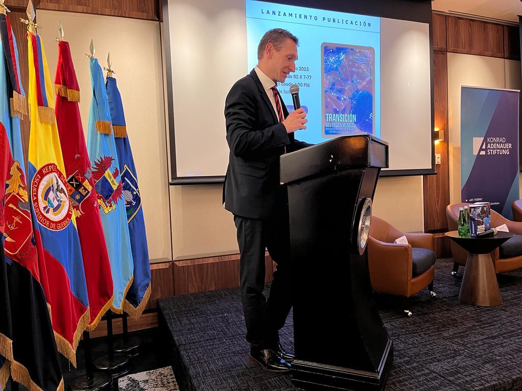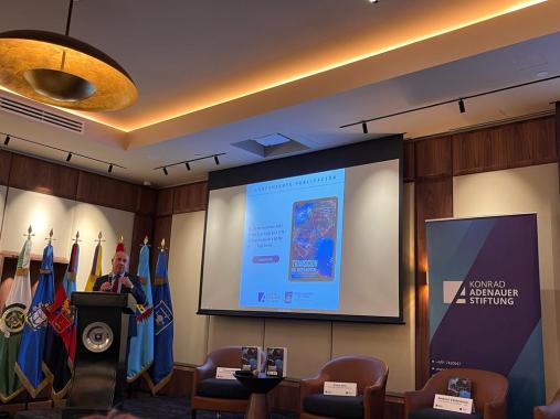 Die Veranstaltung begann mit den Grußworten der Projektkoordinatorin der KAS Kolumbien, Andrea Valdelamar. Der Repräsentant der KAS, Stefan Reith präsentierte kurz die Arbeit der KAS zur Demokratieförderung und nannte die fünf wichtigsten Arbeitslinien: nachhaltige Entwicklung, Friedenskonstruktion, Sicherheit und Verteidigung, Dezentralisierung und Stärkung demokratischer Institutionen; dabei hob er auch die Unterstützung und die jahrelange Zusammenarbeit mit den kolumbianischen Streitkräften, der Militärakademie, ESDEGE und verschiedenen Universitäten im Bereich Sicherheit und Verteidigung hervor. Der Direktor der ESDEGE, General Édgar Salamanca, dankte den Anwesenden für ihre Teilnahme an der Präsentation dieses wichtigen Forschungsprojekts und zeigte sich besorgt über die Entwicklung eines so wichtigen Themas für Kolumbien wie die nationale Sicherheit und Verteidigung.